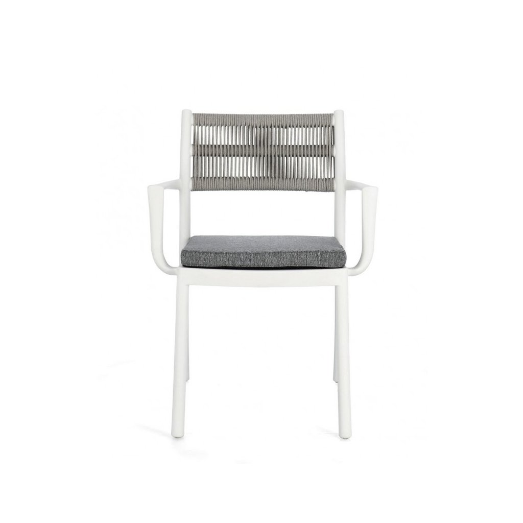 Stylová zahradní židle ALVIN od italského výrobce stylového nábytku BIZZOTTO. Židle ALVIN má nádhernou konstrukci a 2 područky v bílé barvě z polypropylenu. Opěradlo je ozvláštněné tkanou polyesterovou šňůrou ve světle zelené barvě. Židli doplňuje polštář na sezení z polyesterové tkaniny. Polštář dodává židli větší komfort a je odnímatelný. Židle je plně stohovatelná, takže při zimním úklidu nezabere tolik místa.