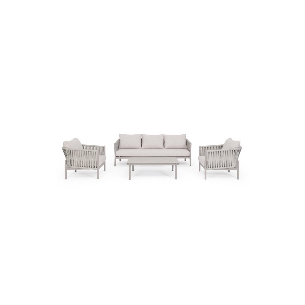 Zahradní konferenční stolek FLORENCIA od italského výrobce stylového nábytku BIZZOTTO. Stolek FLORENCIA s rozměry 120x75 cm má rám z odolného hliníku s práškovým nátěrem ve světlém odstínu. Má 4 nohy, které zajišťují stabilitu a pevnost. Stolek dále tvoří sprejovaná kamenná skleněná deska.