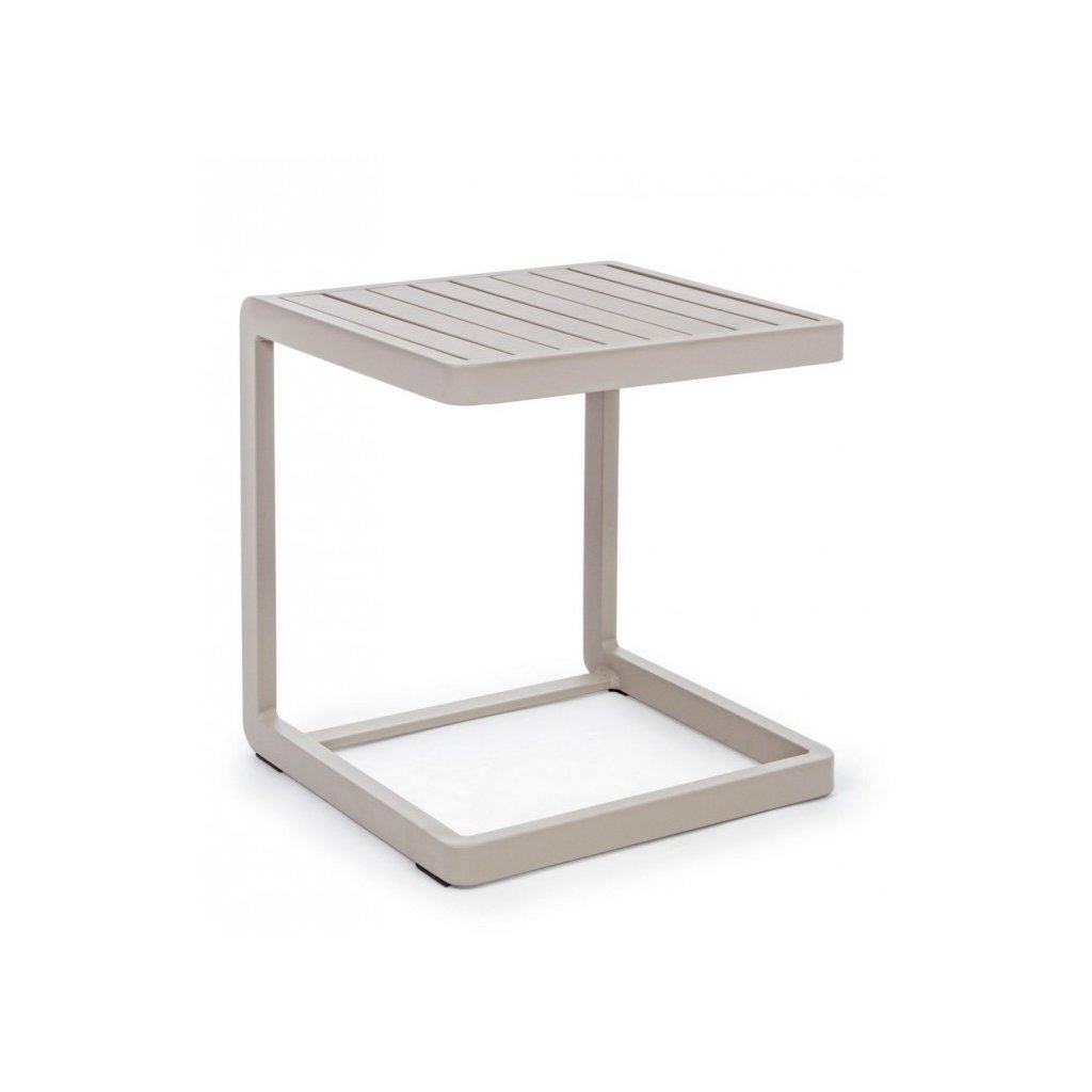Zahradní konferenční stolek KONNOR od italské firmy stylového nábytku BIZZOTTO. Stolek KONNOR tvoří pevná, stabilní hliníková konstrukce, nabarvená ve světle šedé barvě. Konzolová noha stolku tvoří velice zajímavý design celkového provedení. Odkládací deska má čtvercový tvar a dodává stolku moderní styl.