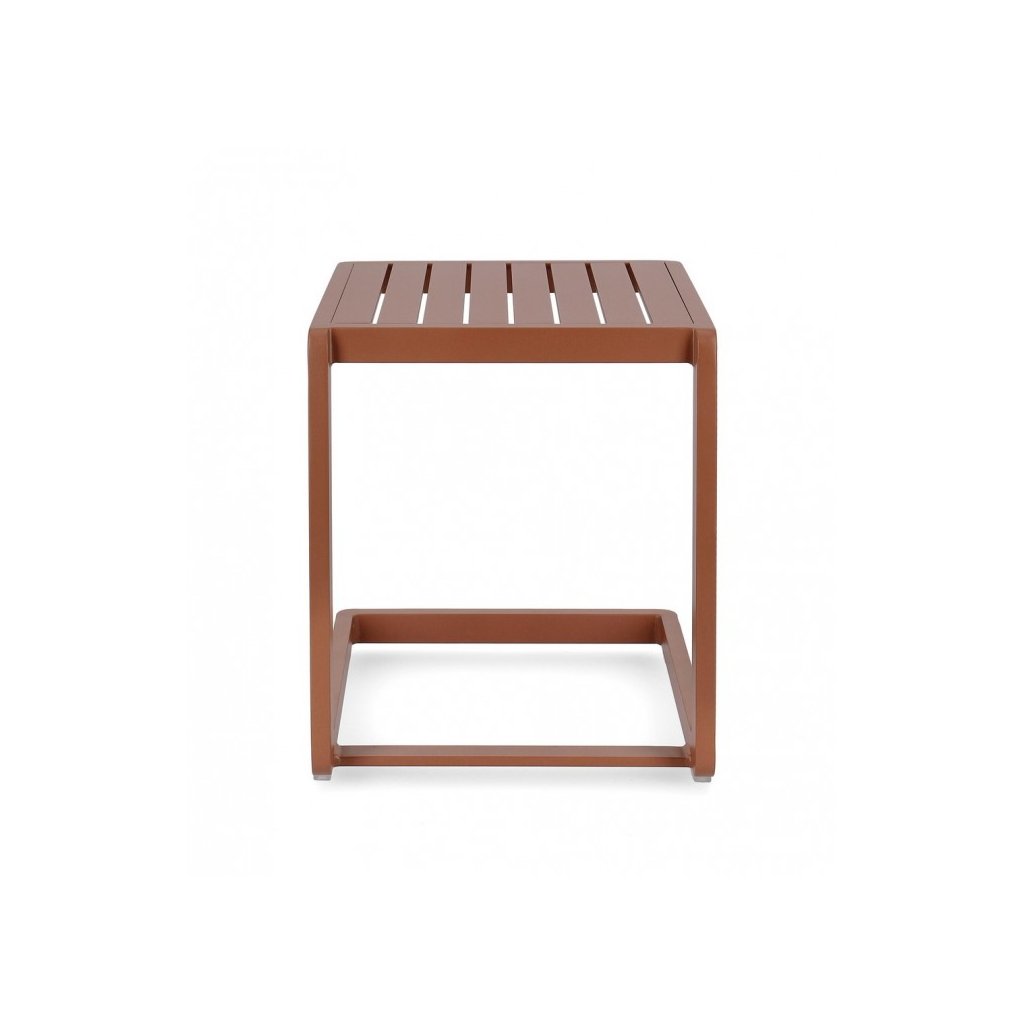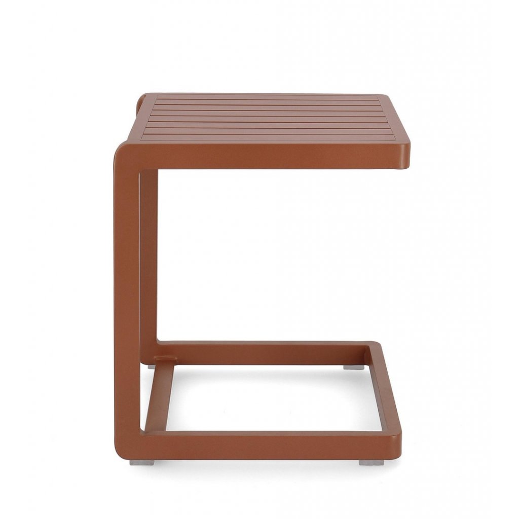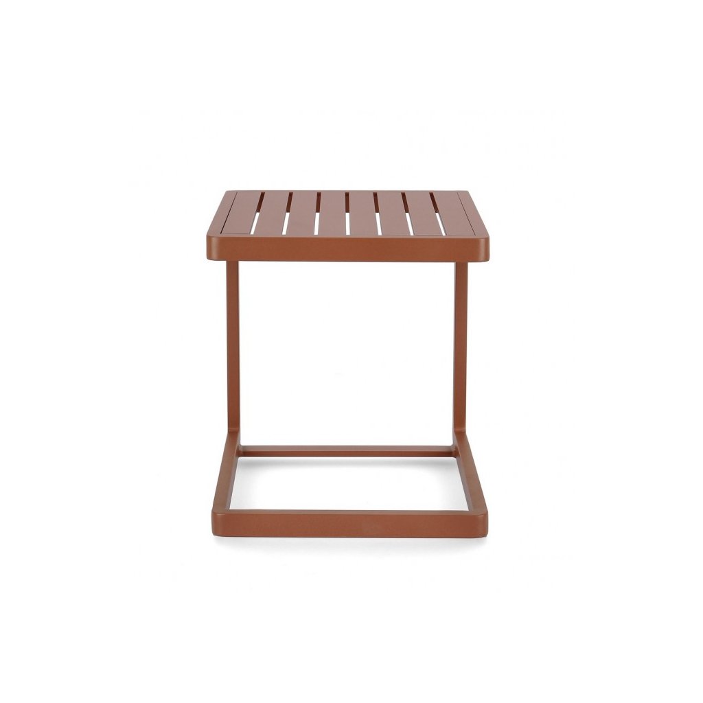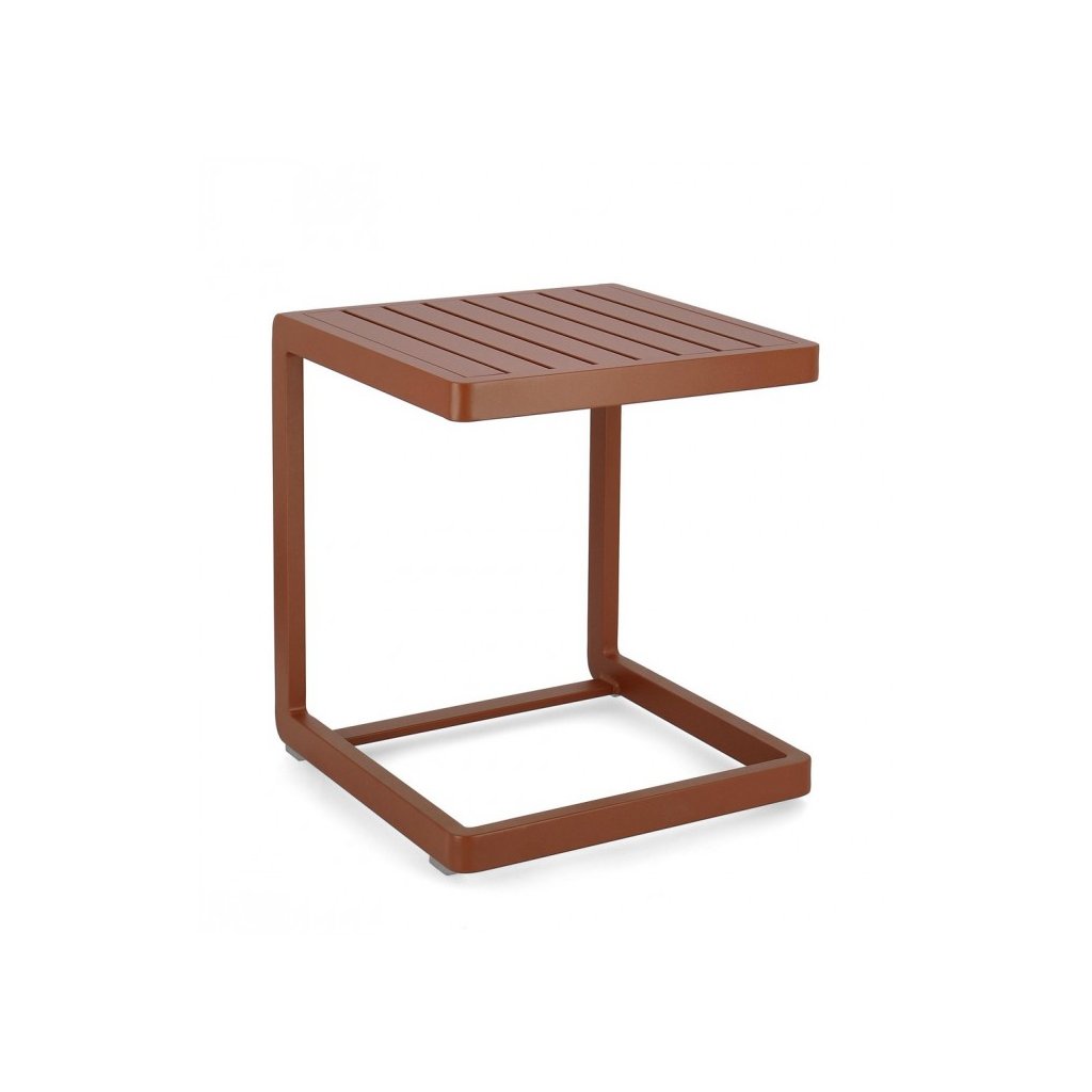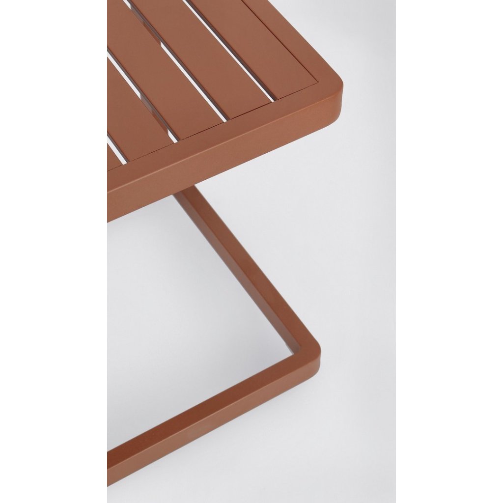 Zahradní konferenční stolek KONNOR od italské firmy stylového nábytku BIZZOTTO. Stolek KONNOR tvoří pevná, stabilní hliníková konstrukce, nabarvená v terakotovém odstínu. Konzolová noha stolku tvoří velice zajímavý design celkového provedení. Odkládací deska má čtvercový tvar a dodává stolku moderní styl.