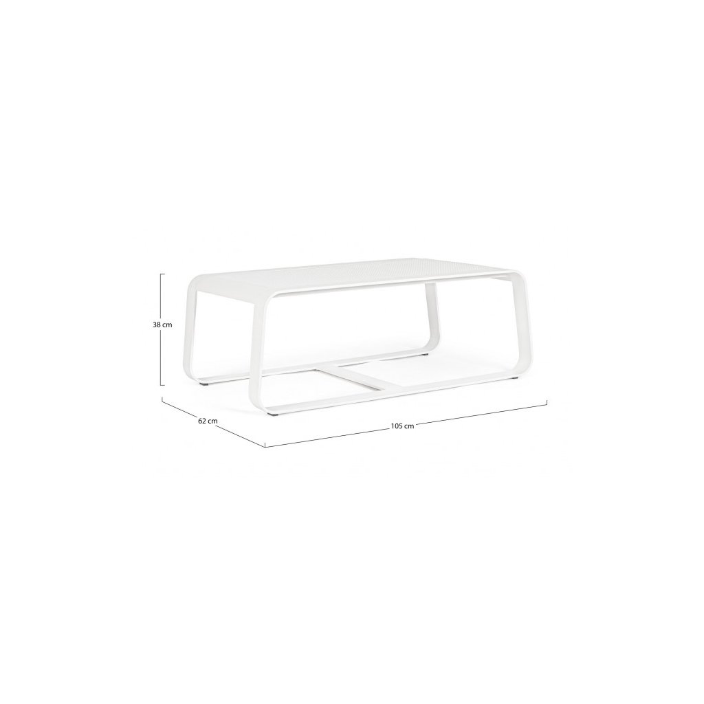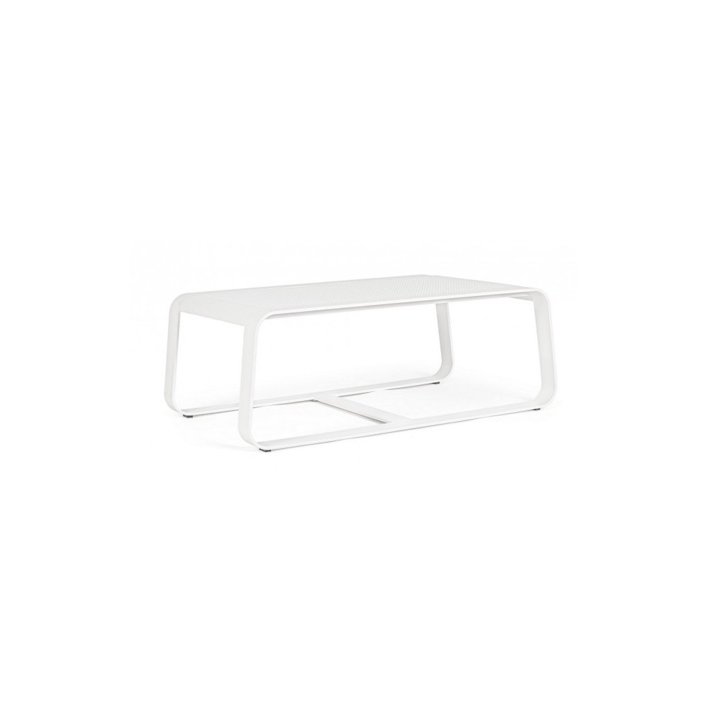 Designový zahradní konferenční stolek MERRIGAN od italské firmy stylového nábytku BIZZOTTO v provedení z práškovaného hliníku v bílé barvě.