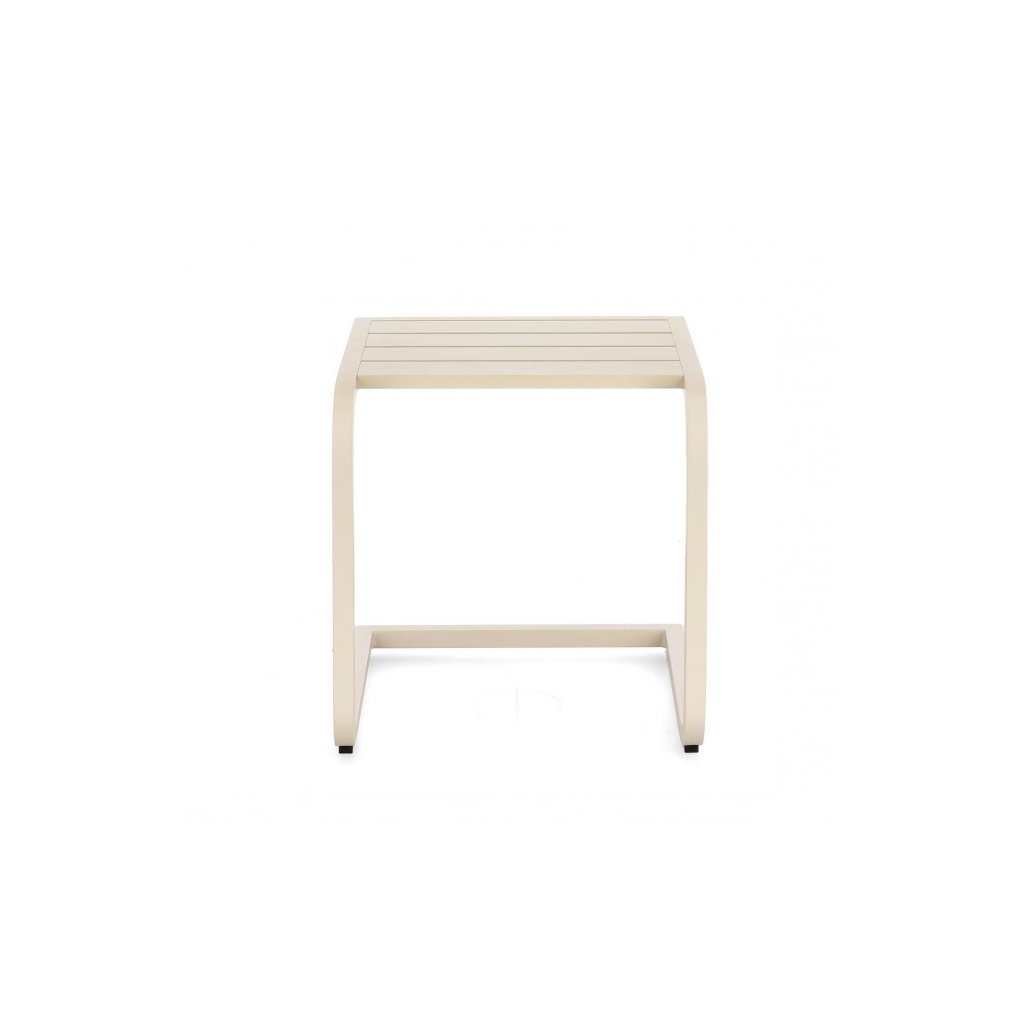 Zahradní konferenční stolek TAYLOR od italského výrobce stylového nábytku BIZZOTTO. Stolek TAYLOR je kompletně vyroben z práškovaného hliníku v béžové barvě. Deska stolku má rozměry 40x40 centimetrů. Stolek má dvě nohy, které jsou propojené ve spodní části. Díky tomuto rozmístění nohou bude skvělou volbou k zahradnímu lehátku.