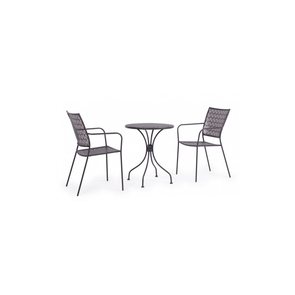 Designová venkovní kovová židle LIZETTE od italského výrobce stylového nábytku BIZZOTTO. Židle je kompletně vyrobena z pevné oceli a skládá se z konstrukce, kterou tvoří tenké nohy přecházející do stejně vypadajících područek. Sedák i opěradlo tvoří tenké kovové pláty naskládány na sebe v různých směrech, což vytváří velmi zajímavý a pěkný obrazec. Vše ošetřeno krásnou antracitovém práškovou barvou. Židle jsou plně stohovatelné, takže je na zimu můžete uklidit a zaberou minimum místa.