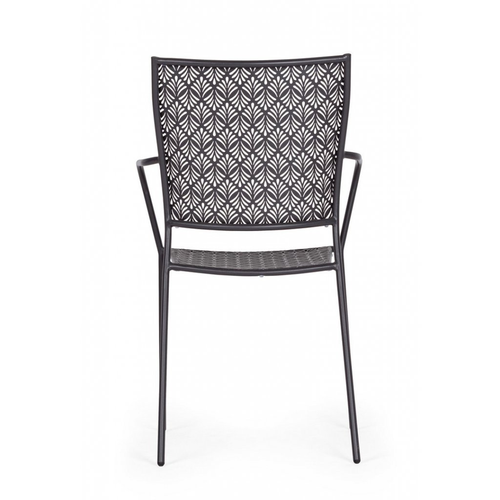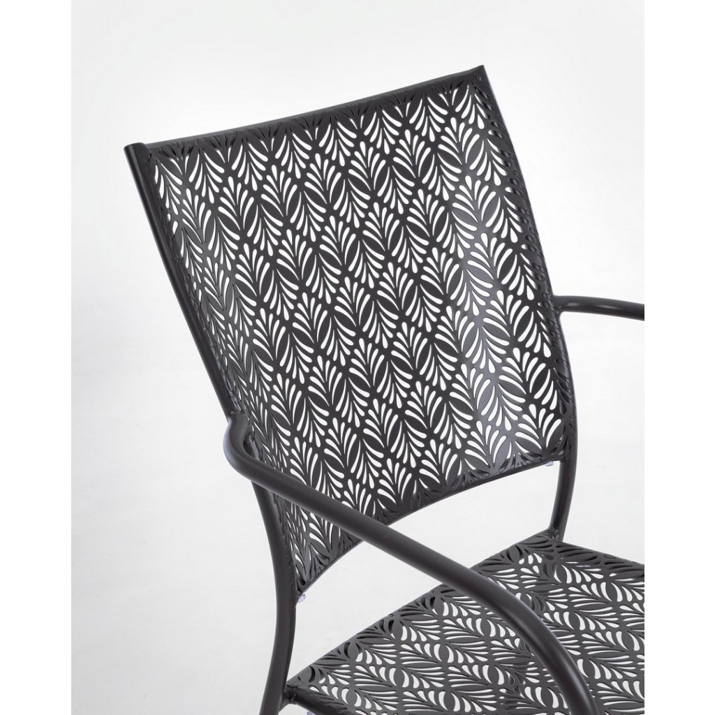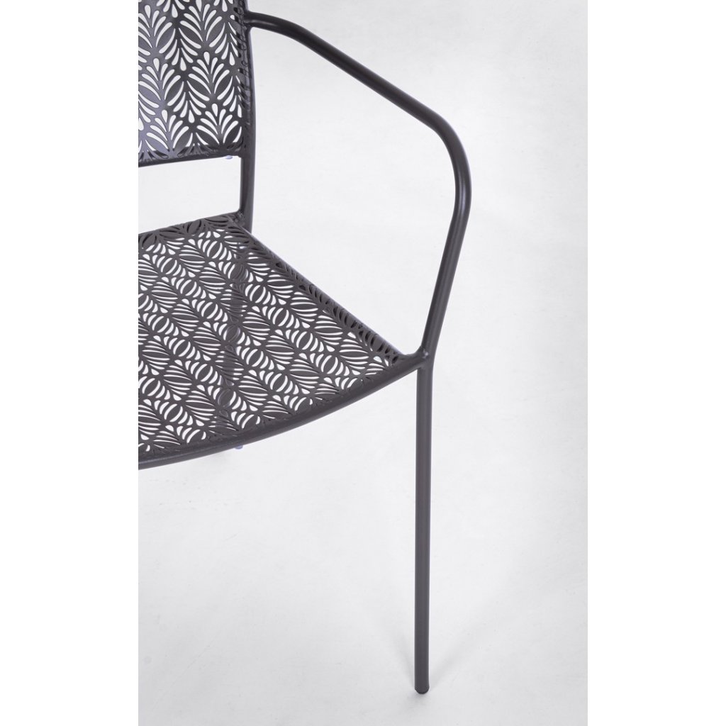 Designová stohovatelná venkovní kovová židle LIZETTE od italského výrobce stylového nábytku BIZZOTTO v krásném vzorovaném antracitovém odstínu lakovaného kovu.