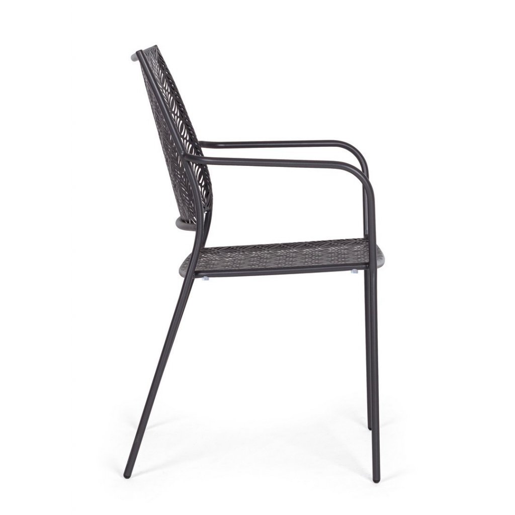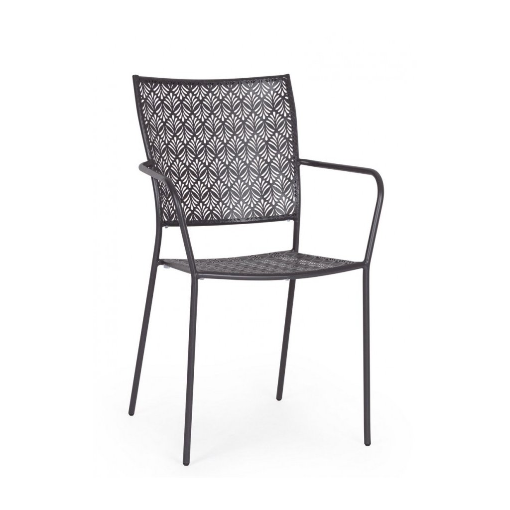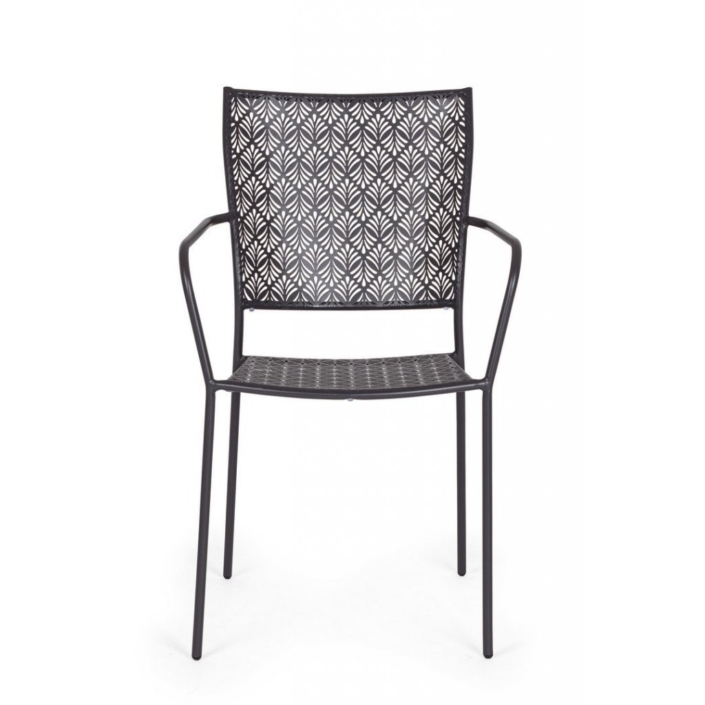 Designová stohovatelná venkovní kovová židle LIZETTE od italského výrobce stylového nábytku BIZZOTTO v krásném vzorovaném antracitovém odstínu lakovaného kovu.