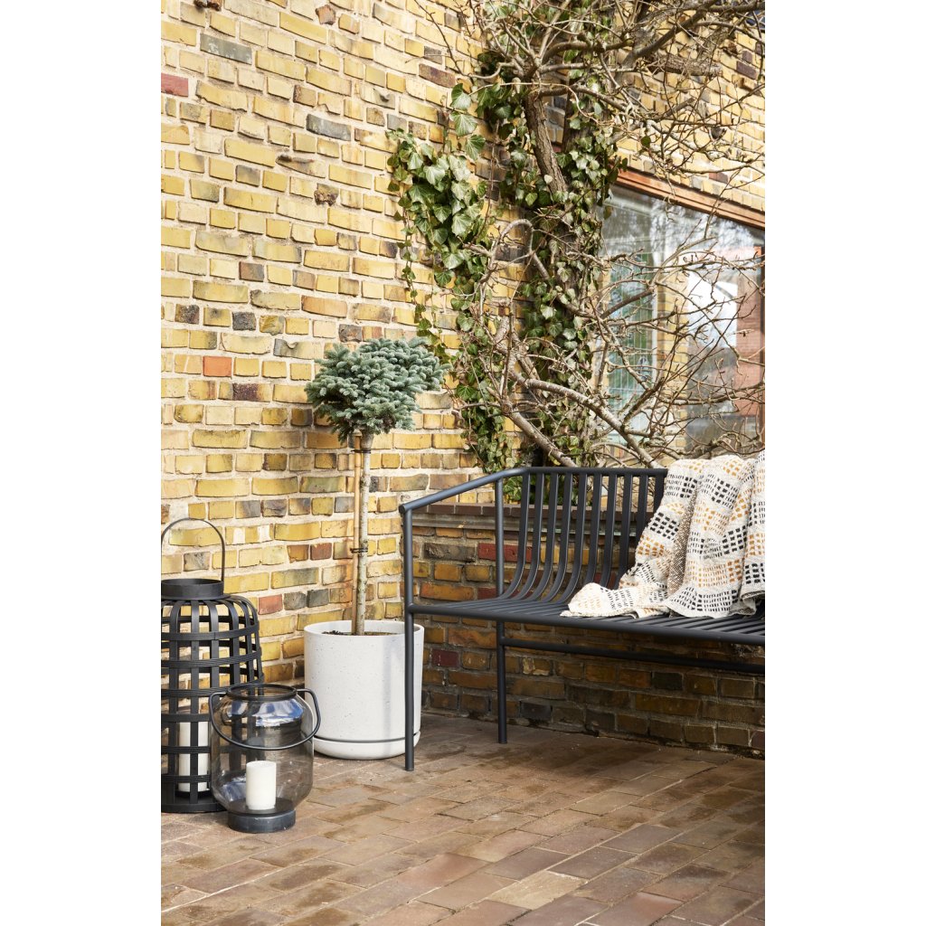 Designová zahradní lavice VILLA od dánské značky skandinávského nábytku HÜBSCH. Zahradní lavice VILLA je kompletně vyrobena z kovu v celistvém provedení, takže nevyžaduje montáž. Díky tomu je taky i odolná vůči všem vlivům. Konstrukce je pak nanesena černou barvou. Vynikne díky jednotlivým černým pruhům, které jdou od opěrky po sedák. Komfort pak zajišťují tenké područky.