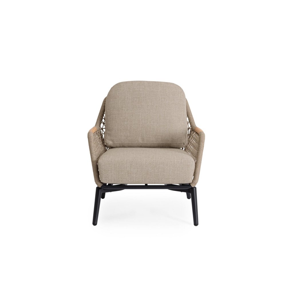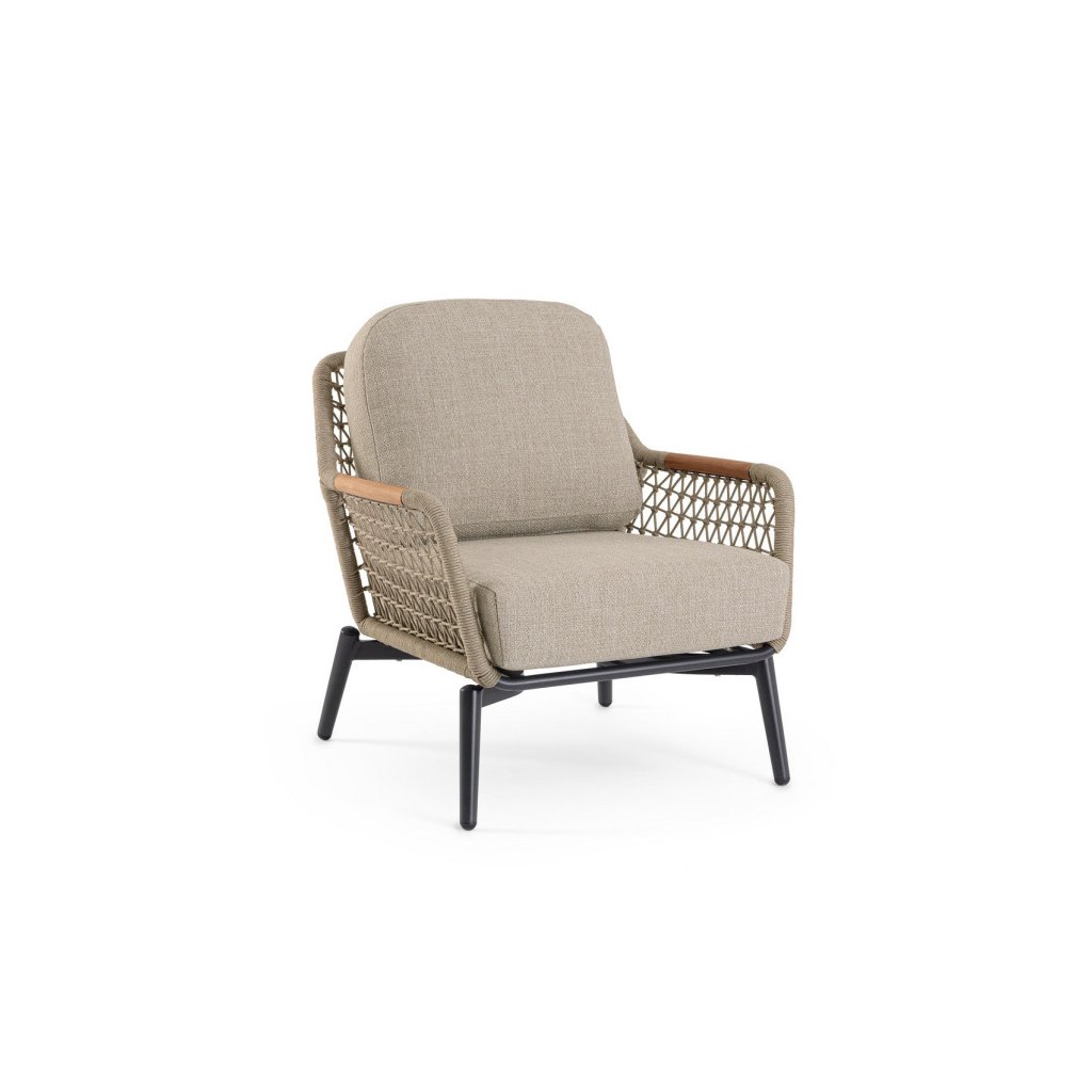 Zahradní křeslo EULERO od značky Bizzotto je výjimečnou volbou pro ty, kteří oceňují komfort, estetiku a moderní design inspirovaný přírodou. Navrženo jako ideální doplněk k pohovce ze stejné kolekce, ale skvěle poslouží i jako samostatný relaxační prvek na terase, balkoně nebo v zahradě. Kombinuje moderní formu s jemnými prvky stylu boho – dekorativní pletené boky dodávají křeslu lehkost a přírodní charakter. Antracitová hliníková konstrukce působí elegantně a tvoří perfektní kontrast k měkkým, silným polštářům v módním béžovém odstínu, které zaručují maximální pohodlí.
