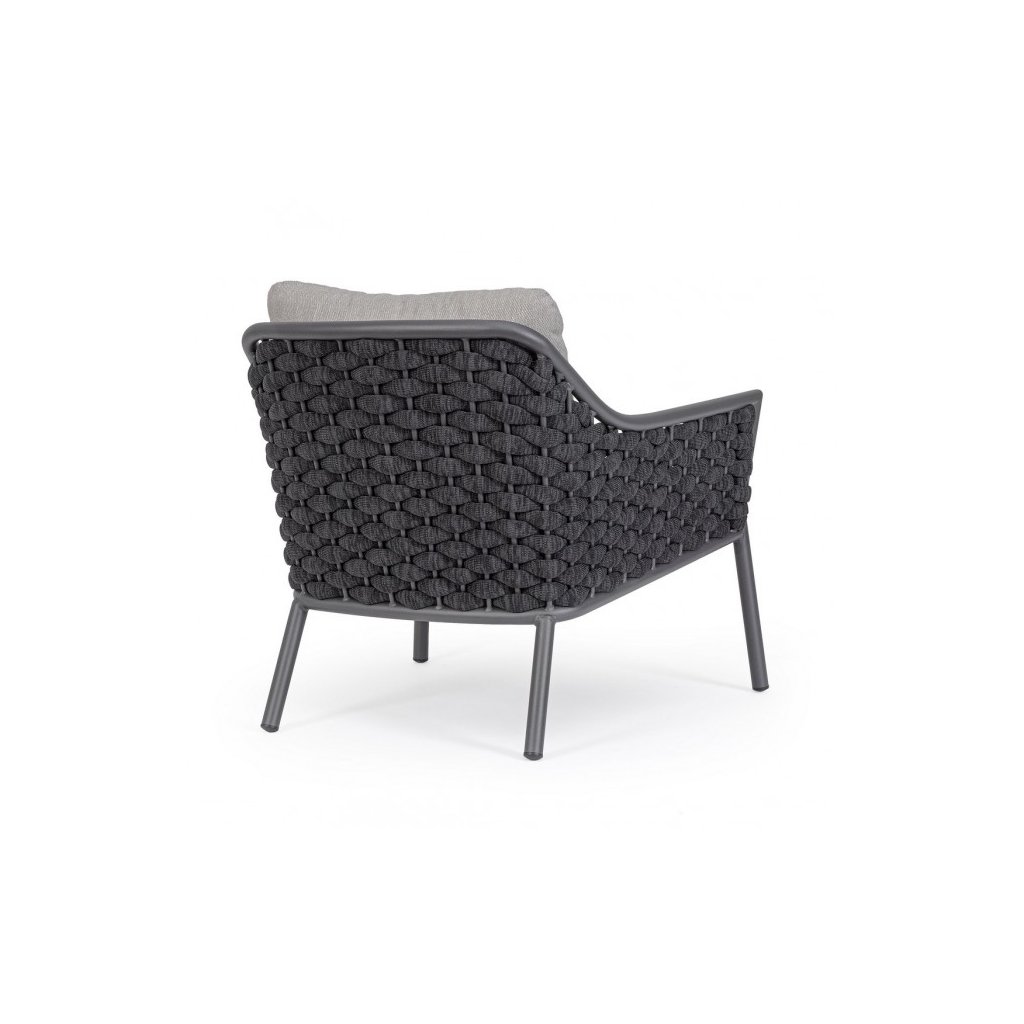 Designové zahradní křeslo EVERLY od italské firmy stylového nábytku BIZZOTTO. Křeslo EVERLY tvoří hliníkový rám s práškovým nátěrem, záda jsou vyplněna textilním lanem s náplní z nitrilové pryže. Sedadlo a zadní polštář jsou z olefinové látky v šedé barvě. Krásné a velmi pohodlné křeslo v tradičním a žádaném provedení. Křeslo se stane Vaším oblíbeným společníkem ve chvíli odpočinku a relaxace.