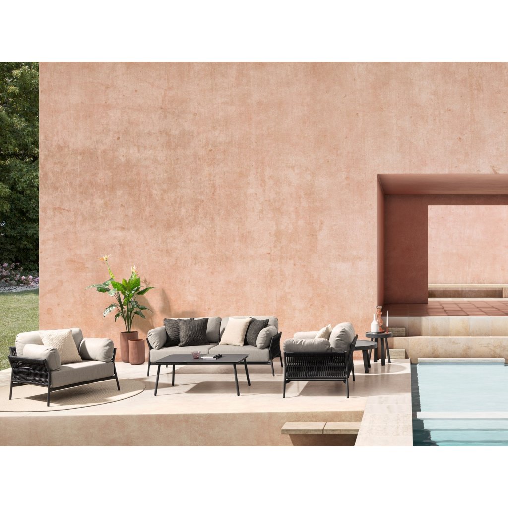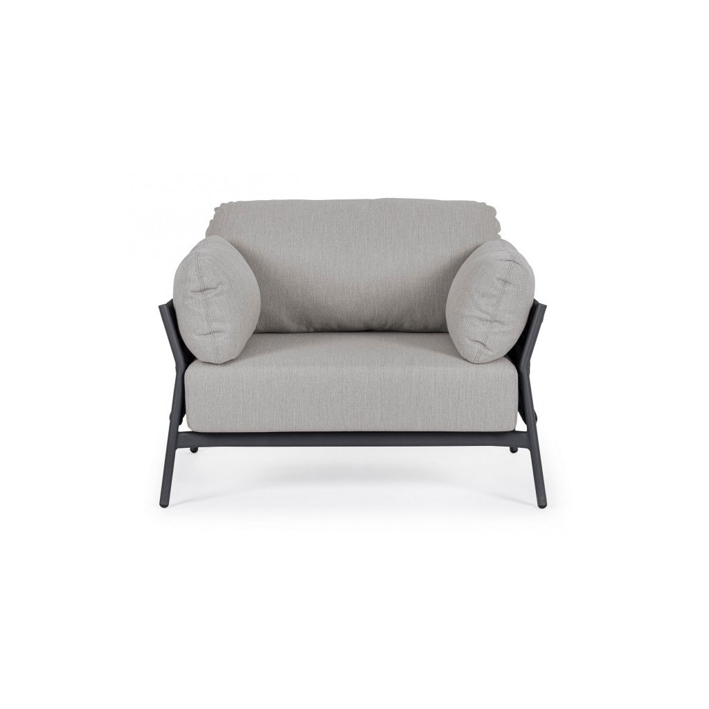 Designové zahradní křeslo PARDIS od italské firmy stylového nábytku BIZZOTTO v provedení nabarveného hliníku a polštářů z látky olefin v antracitovém odstínu.