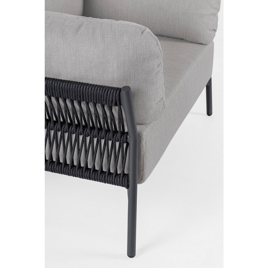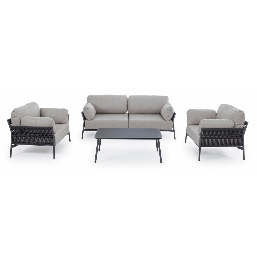 Designové zahradní křeslo PARDIS od italského výrobce stylového nábytku BIZZOTTO. Zahradní křeslo tvoří konstrukce z šedě lakovaného hliníku, díky které je velmi lehká. Bočnice jsou vypleteny z vodoodpudivé látky olefin a polštáře mají taktéž povlak z této látky. Polštáře a sedák jsou odnímatelné pro lepší čištění.