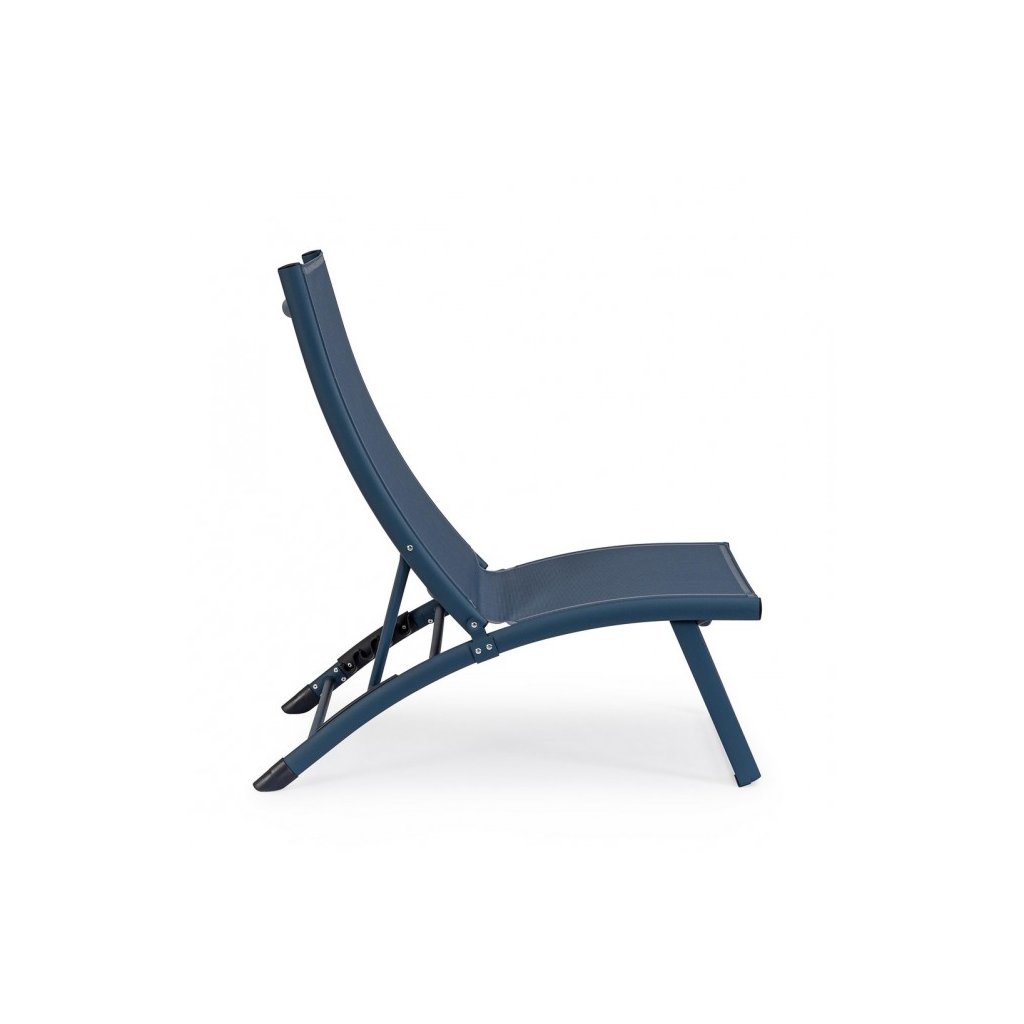 Designové polohovatelné venkovní lehátko TAYLOR od italského výrobce stylového nábytku BIZZOTTO. Konstrukce z modrého práškovaného hliníku zajišťuje pevnou oporu lehátka a zároveň je díky ní lehátko lehké a snadno manipulovatelné. Lehátko TAYLOR je dodáváno s moderním povlakem ze syntetického vlákna. Opěradlo se dá nastavit do 4 poloh. Praktické a stylové skládací lehátko TAYLOR si pro jeho jednoduchost, krásu a pohodlnost zamilujete.