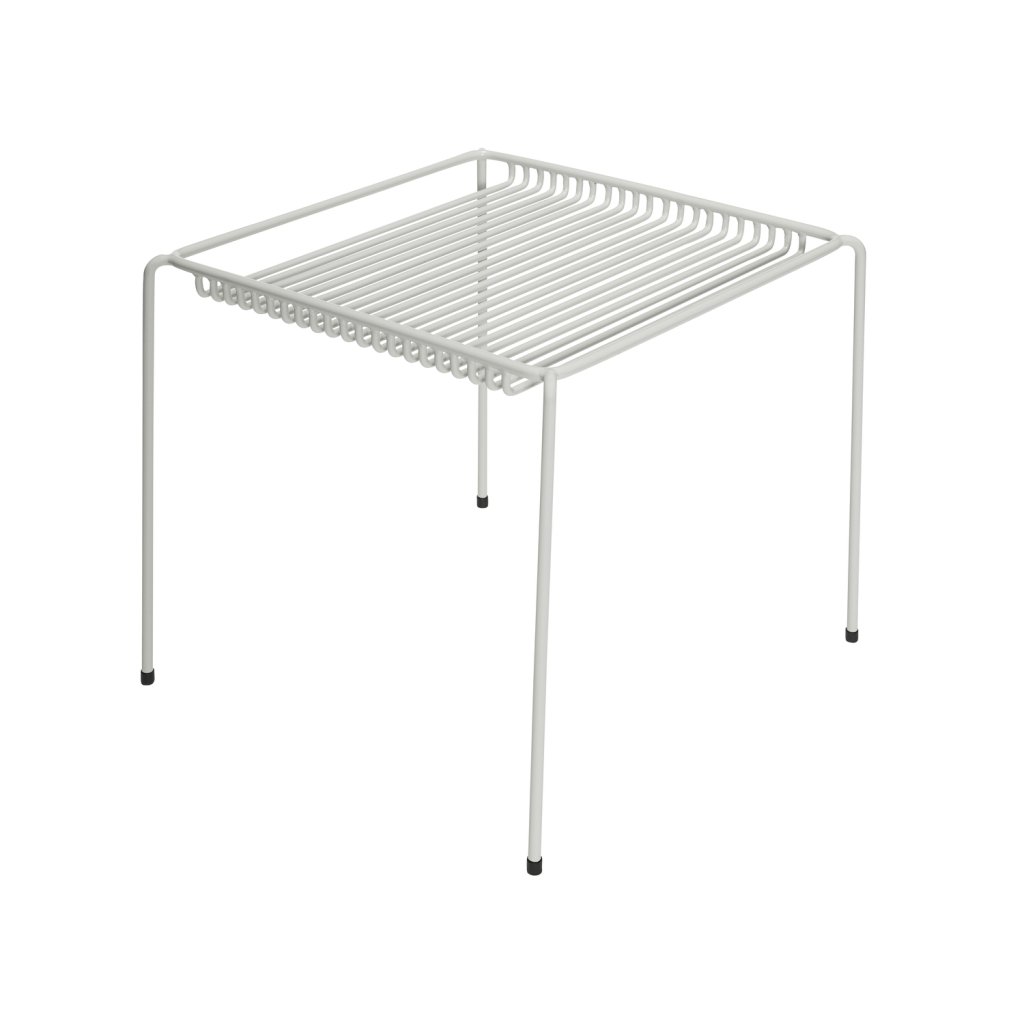Designový zahradní odkládací stolek STRING od dánské značky skandinávského nábytku HÜBSCH. Stůl je kompletně dodán ve světle šedém provedení z kovu. Vrchní plocha 51x51 cm je v provedení jednotlivých kovových "latí". Jeho elegantní, minimalistický design vnese do vašeho exteriéru moderní nádech.