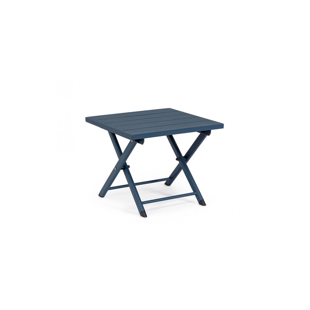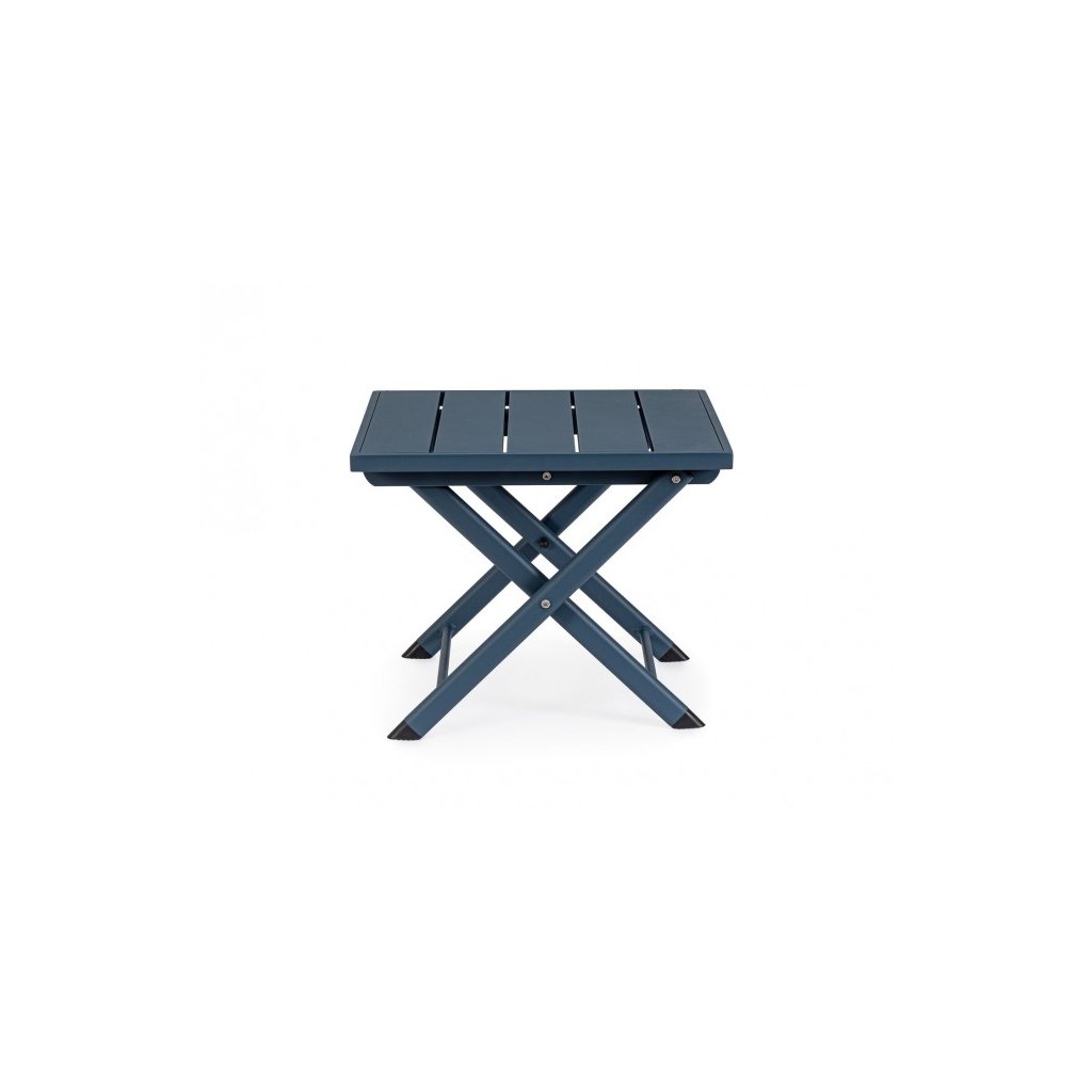 Zahradní konferenční stolek TAYLOR od italské firmy stylového nábytku BIZZOTTO. Stolek TAYLOR tvoří pevná, stabilní hliníková konstrukce s práškovanou úpravou, v modré barvě. Stolek je skládací a tvoří tak velice zajímavý design celkového vzhledu. Odkládací deska ve stylovém provedení dodává stolku moderní styl.