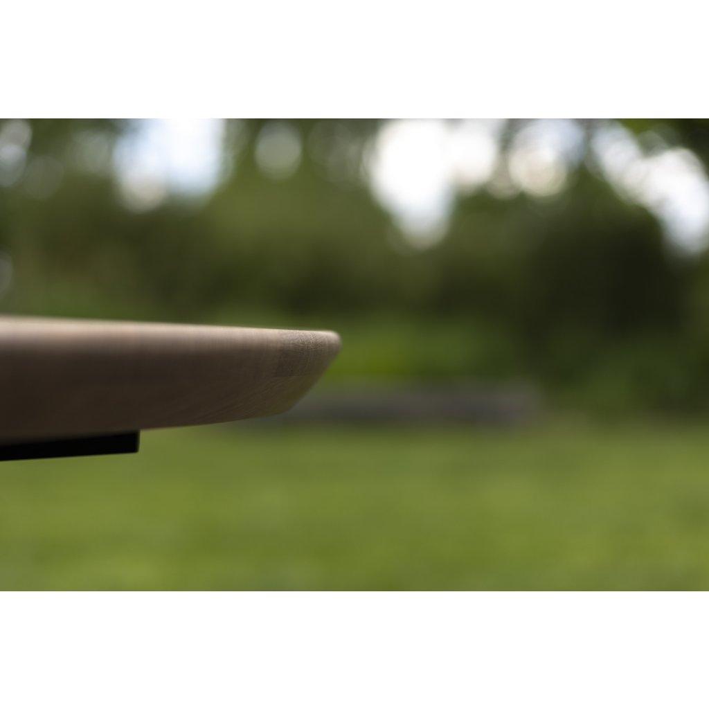 Unikátní organický jídelní stůl ZLESART od českého výrobce unikátních produktů ZLESART. Deska stolu má nepravidelný tvar a je složena z 5 kusů masivního dubového dřeva ve formě dvouvrstvé dubové spárovky. Její průměr tvoří zhruba 170 cm a pyšní se vypáleným logem a motivem 3 nádherných kapradin uprostřed stolu. Finálně je dřevo stolu napuštěno kvalitním olejem pro zajištění odolnosti vůči venkovním povětrnostním podmínkám. Samotná deska je pak položena na 1 centrální kovové noze v bílém práškovaném laku. K dodání také v jiné barvě centrální nohy nebo jiného dřeva na jídelní desce.