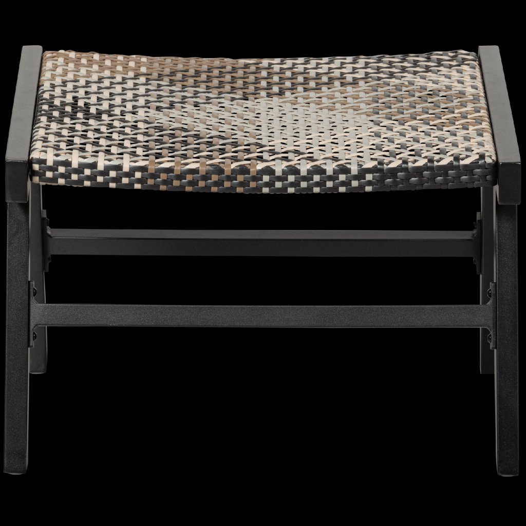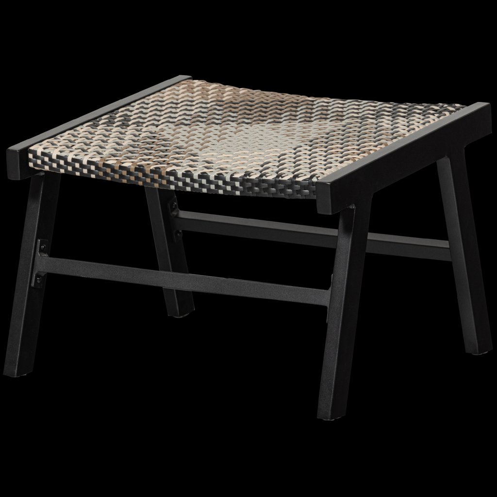 Černá podnožka POM od holandského výrobce kvalitního nábytku WOOOD. Rám podnožky je vyrobený z hliníku, vrchní část potom z tkaných vláken vyrobených z polyethylenu. Podnožku je možné nakombinovat s křesílkem nebo použít samostatně v případě početné návštěvy.