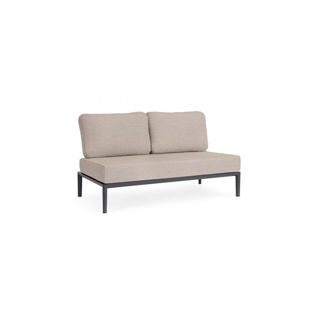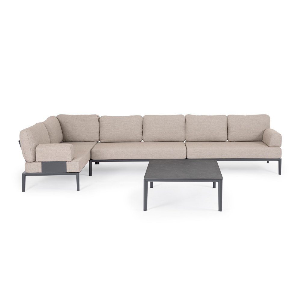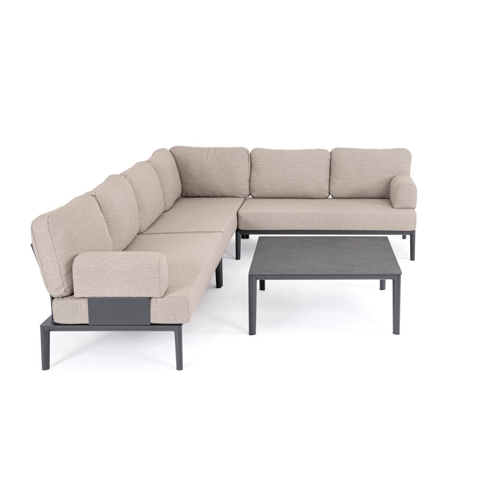 Designová zahradní pohovka GERALD od italského výrobce stylového nábytku BIZZOTTO v kombinaci béžové látky a antracitového hliníkového rámu.