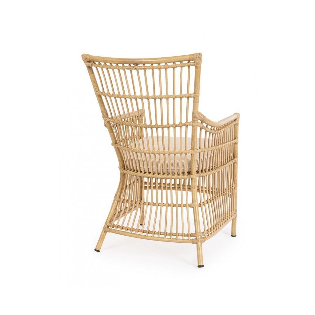 Ratanové křeslo ADELMA od italského výrobce nádherného nábytku BIZZOTTO. ADELMA má kvalitní konstrukci v ratanovém provedení ve světlé barvě. Sedák s opěrkou jsou v provedení ratanu s výpletem v přírodní barvě. Toto křeslo působí velice elegantním dojmem. Sedák je potažen příjemnou olefinovou látkou, která je odolná proti slunečnímu záření.
