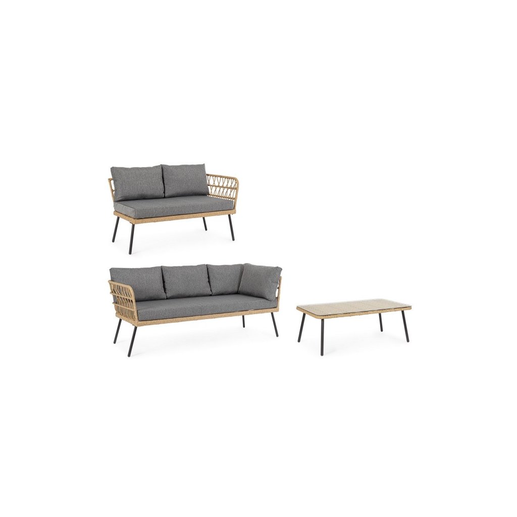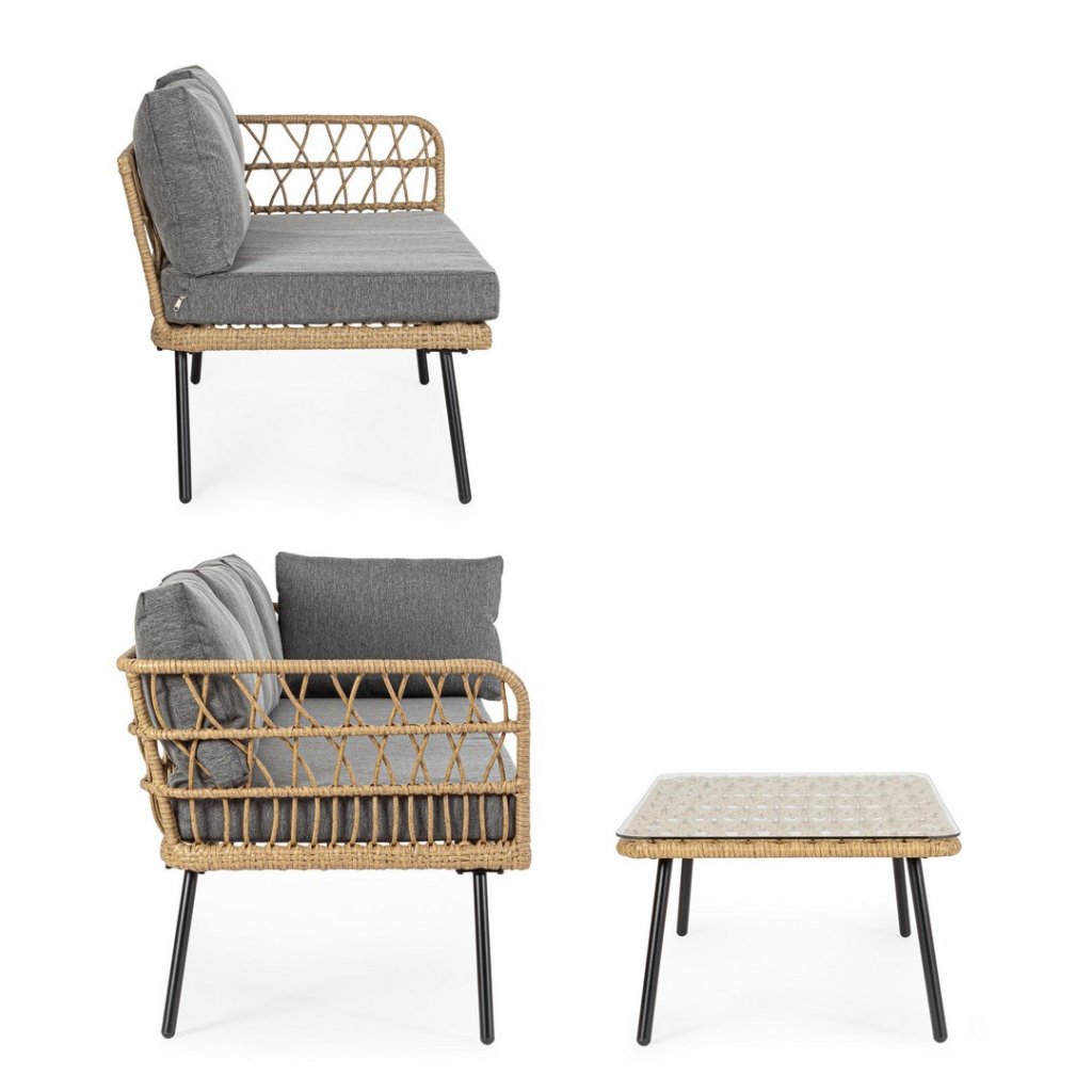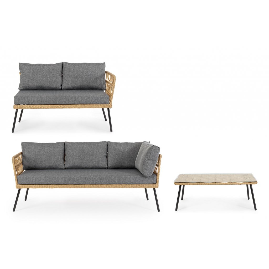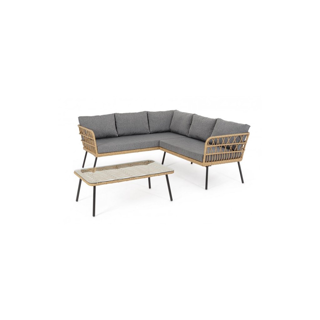 Designová zahradní sestava BURREL od italské značky nádherného nábytku BIZZOTTO v kombinaci rohové pohovky s polštářky a konferenčním stolkem.
