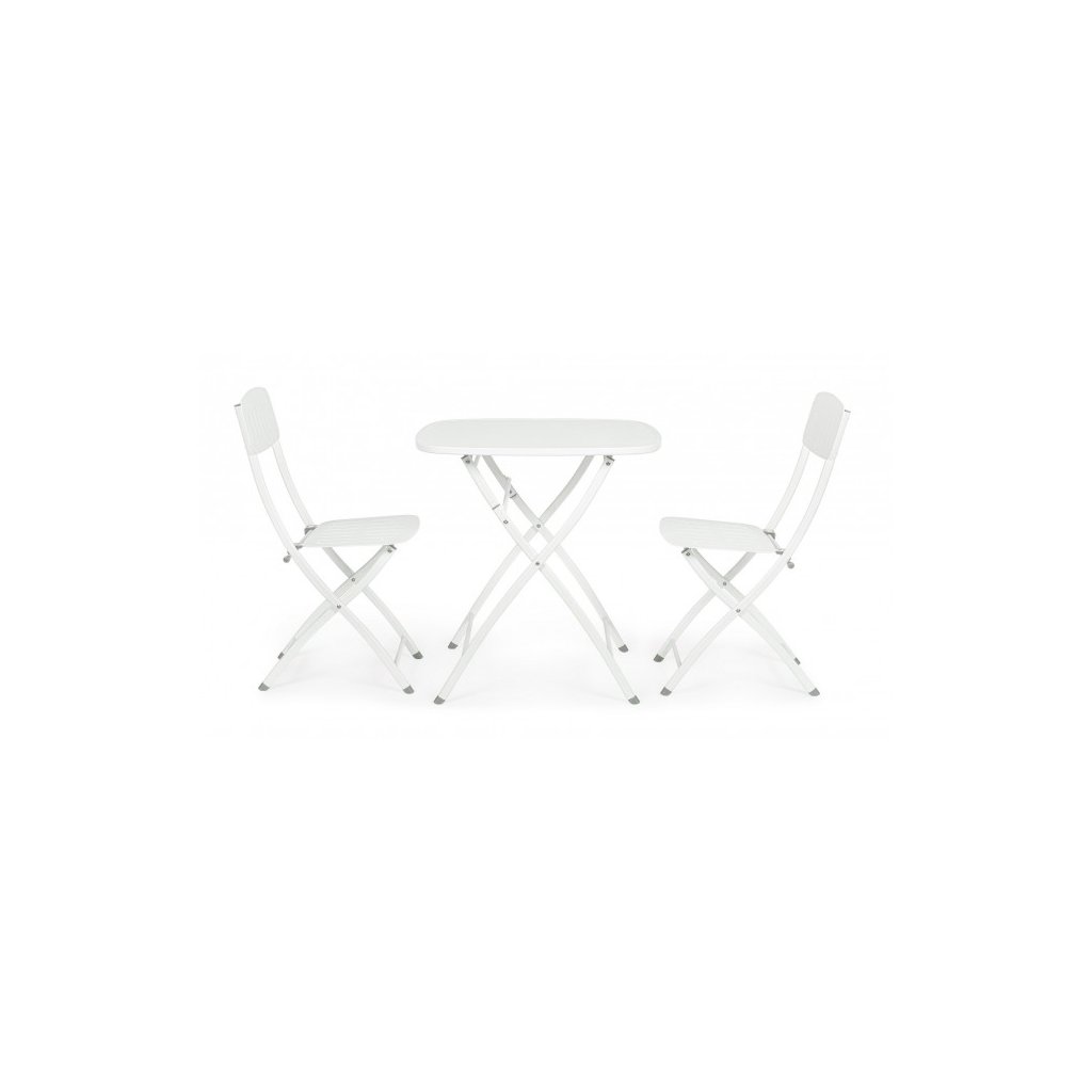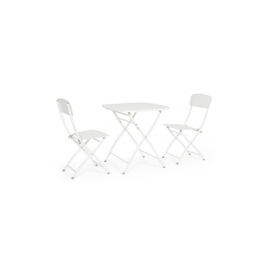 Designová zahradní sestava stolku a jídelních židlí YVONNE od italského výrobce nábytku BIZZOTTO. Vše je vyrobeno z oceli pro venkovní použití. Stolek a židle jsou skládací, krásně je tedy přes zimní období uklidíte dle potřeby a nezabere moc úložného prostoru. Kovová konstrukce v bílé barvě krásně rozzáří vaší zahradu.