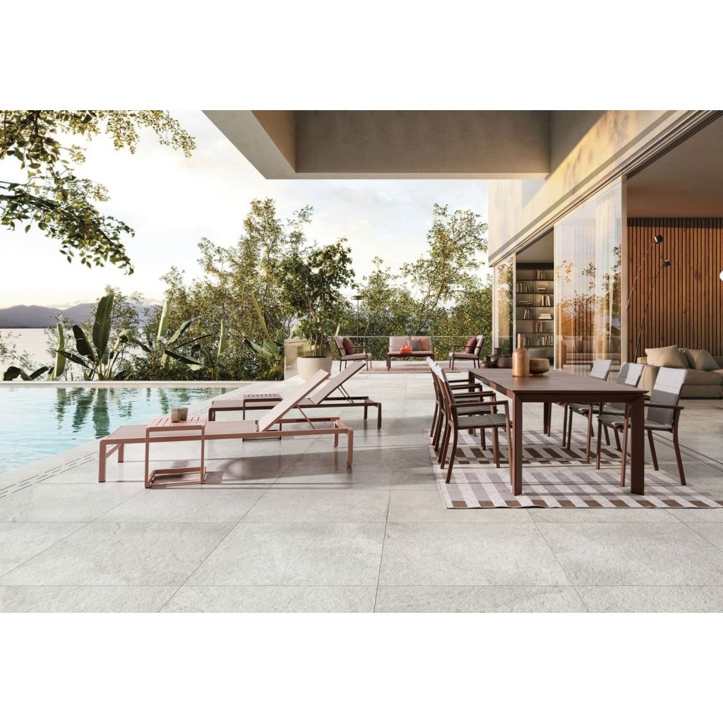 Designový zahradní set KONNOR od italského výrobce stylového nábytku BIZZOTTO v kombinaci pohovky, křesel a konferenčního stolku.