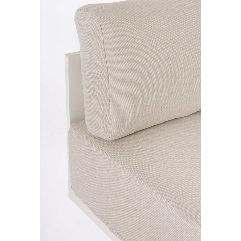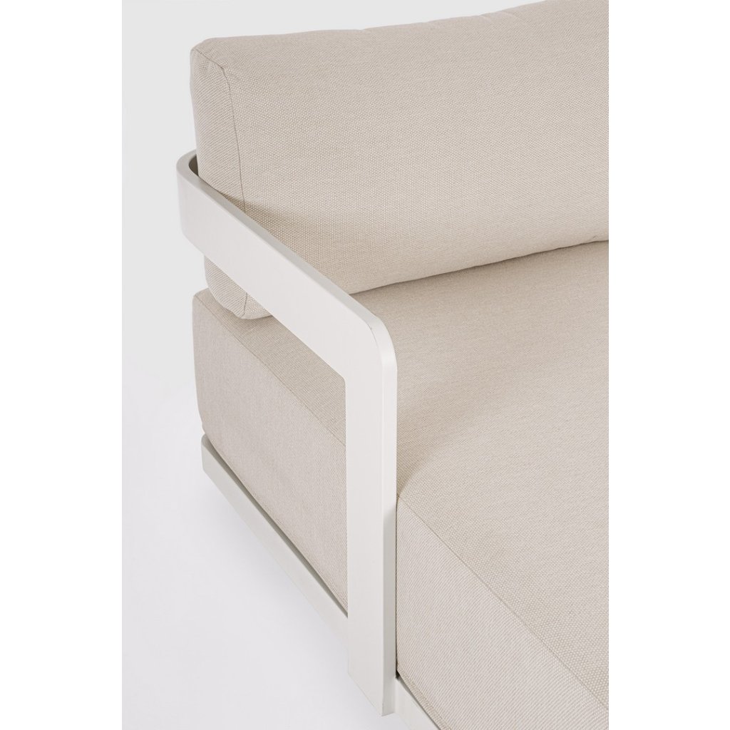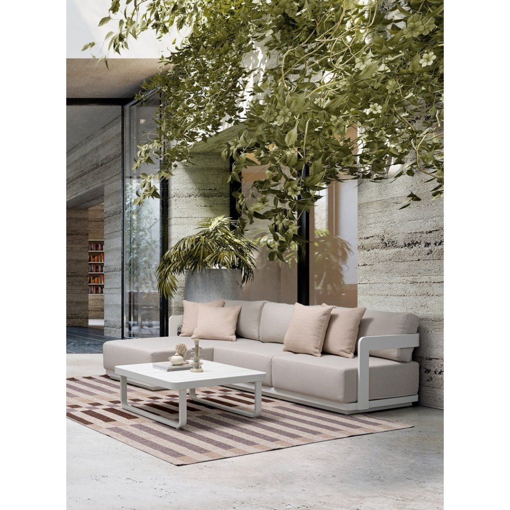 Designový zahradní set MARIEL od italského výrobce stylového nábytku BIZZOTTO. Zahradní sestavu tvoří třímístná rohová pohovka a konferenční stolek. Celá sestava je vyrobena z hliníku s práškovým nátěrem v bílém provedení. Pohovka má vyjímatelné sedací a opěrné polštářky z béžové olefinové voděodolné látky. Díky kvalitnímu materiálu je set odolný a lehký na manipulaci.