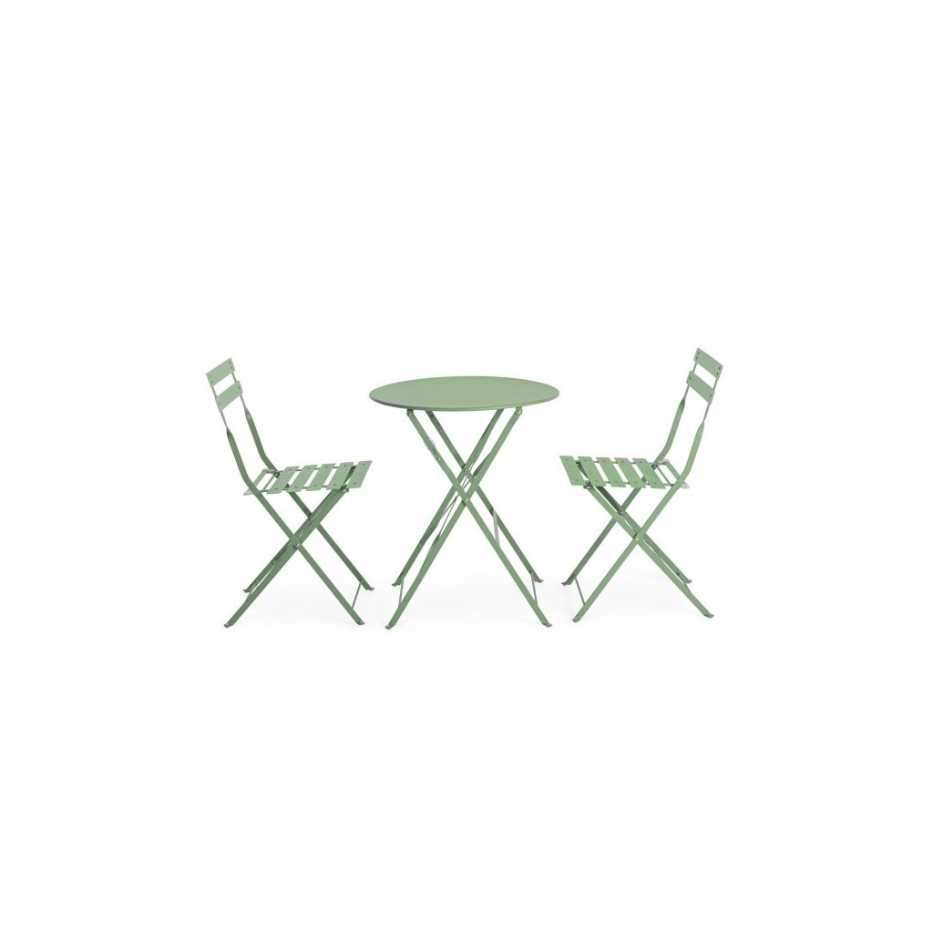Designová zahradní sestava stolku a jídelních židlí AUSTIN od italského výrobce stylového nábytku BIZZOTTO v kovovém provedení v zelené barvě.