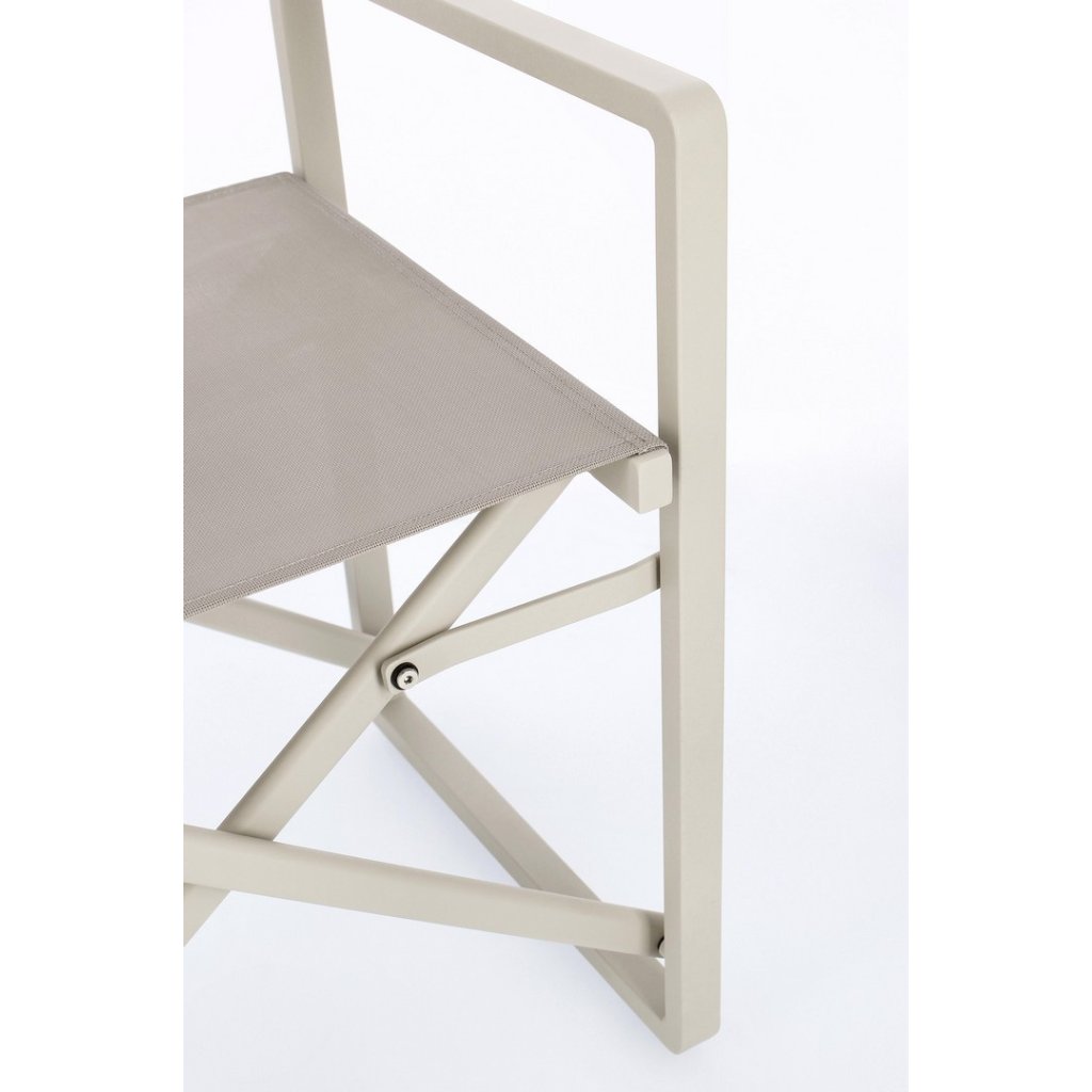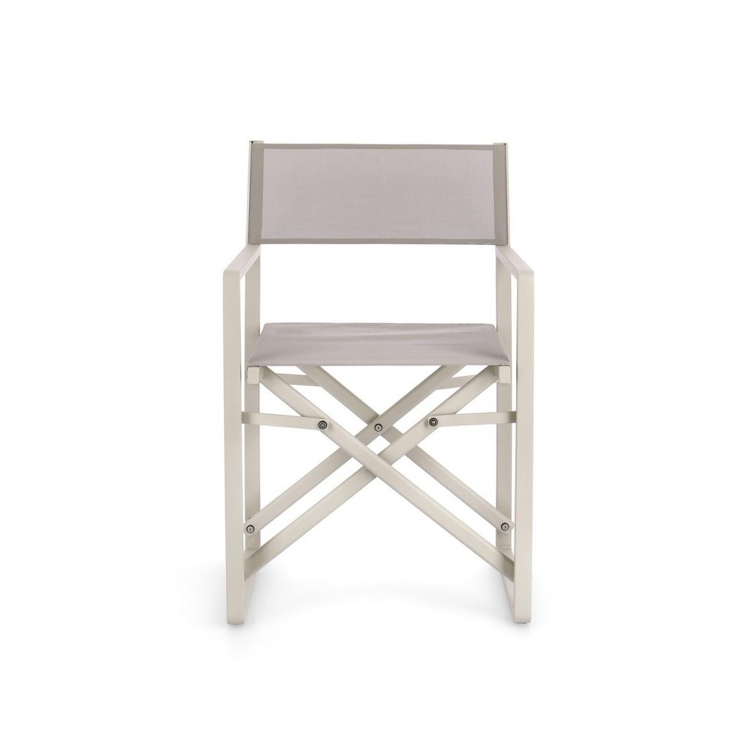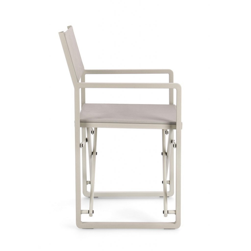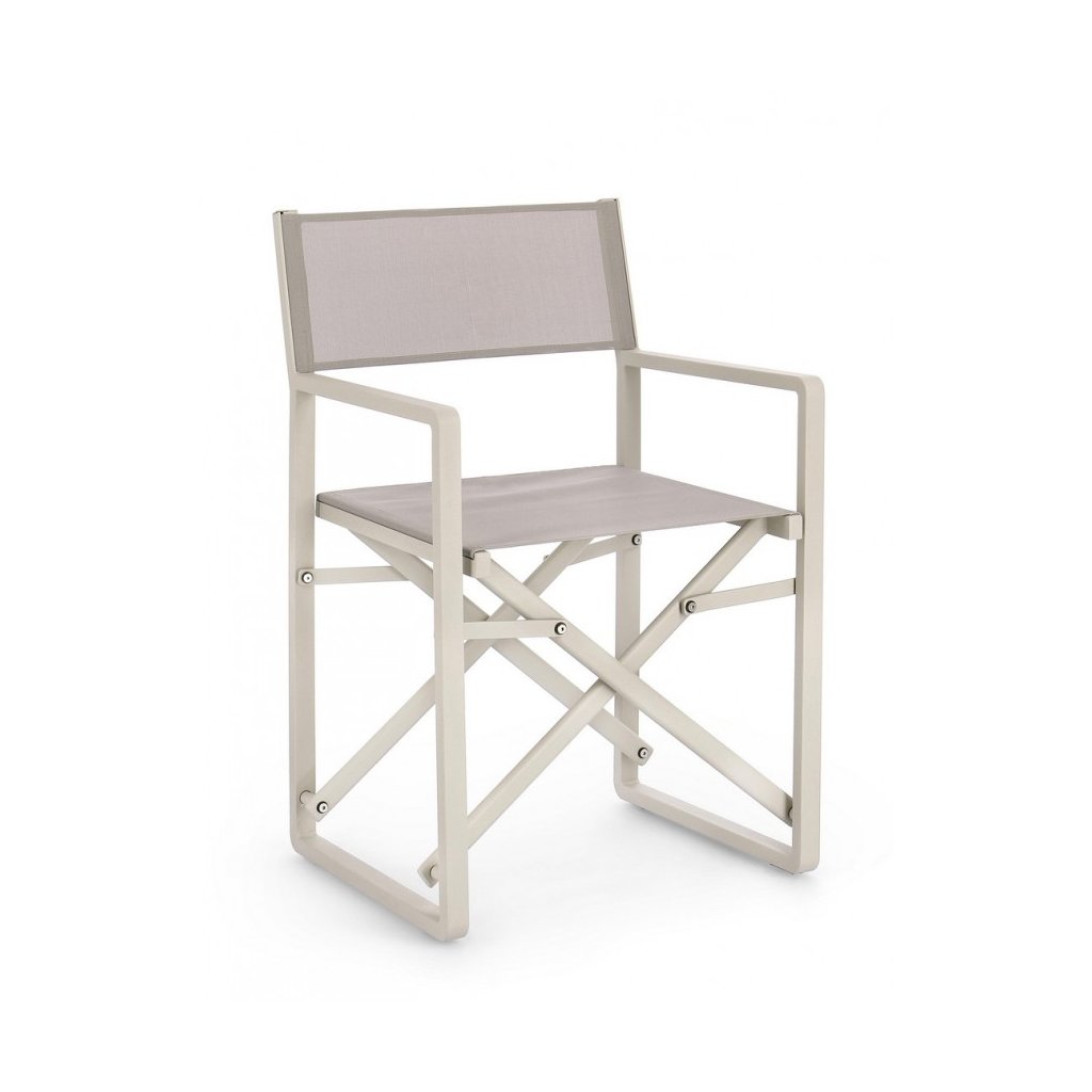 Designová venkovní židle s opěrkami KONNOR od italské firmy stylového nábytku BIZZOTTO. KONNOR tvoří pevný rám z hliníku, židle je díky tomu velmi lehká. Sedák a opěradlo je z umělé textilie. Tuto, chcete-li "režisérskou" židli můžete složit a uklidit dle potřeby.
