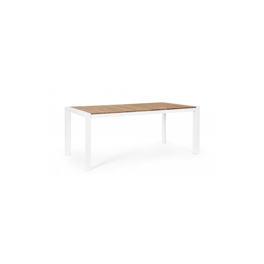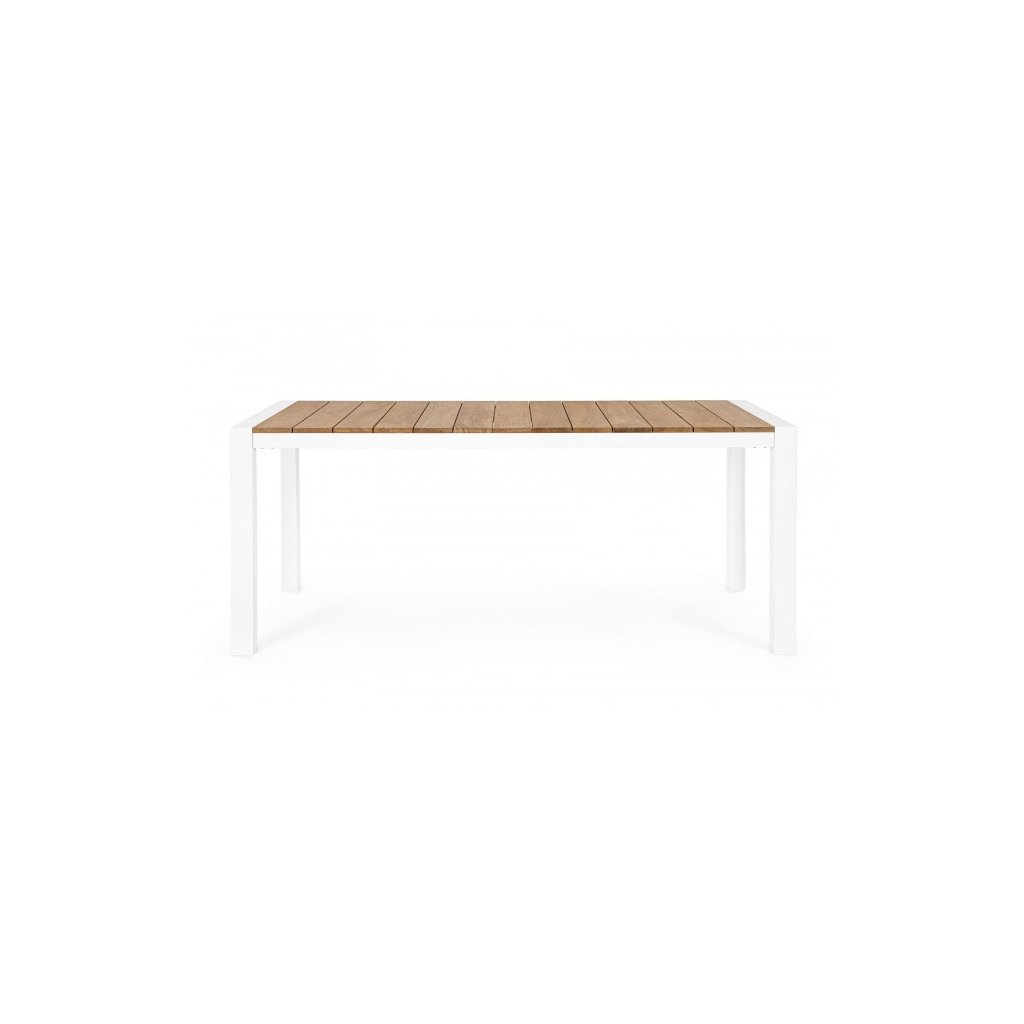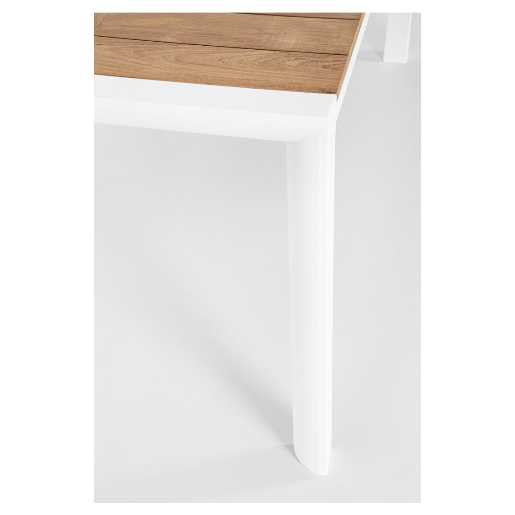 Stylový zahradní stůl CAMERON od italského výrobce stylového nábytku BIZZOTTO v bílé barvě lakovaného hliníku a teakového dřeva.