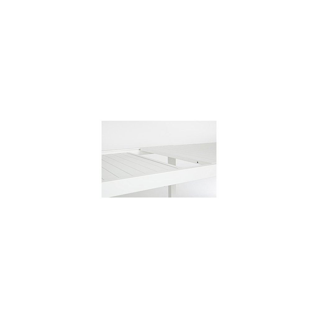 Rozkládací zahradní jídelní stůl HILDE od italského výrobce stylového nábytku BIZZOTTO. Stůl je kompletně vyroben z bíle stříkaného hliníku, což zajišťuje jeho maximální pevnost, stabilitu a pevnost vůči venkovním vlivům, ale také jeho poměrně nízkou váhu. Spojovací šrouby jsou galvanizovány, takže se nemusíme bát koroze. Stůl má 4 nohy, na nichž je rozkladatelná deska s délkou 200 cm a možností jednoduchého prodloužení až na délku 300 cm, takže krásně usadíte minimálně 12 osob.