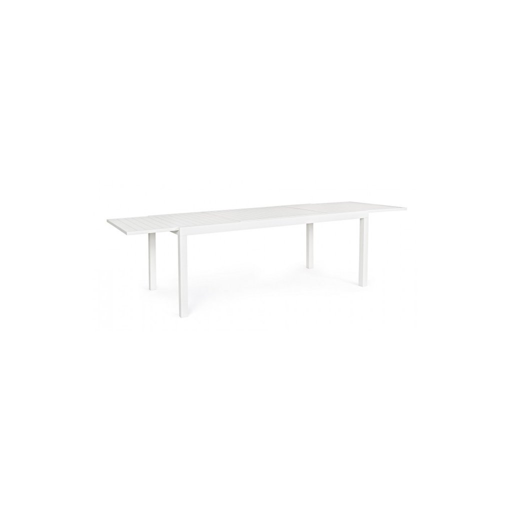 Rozkládací zahradní jídelní stůl HILDE od italského výrobce stylového nábytku BIZZOTTO v provedení bíle stříkaného hliníku.
