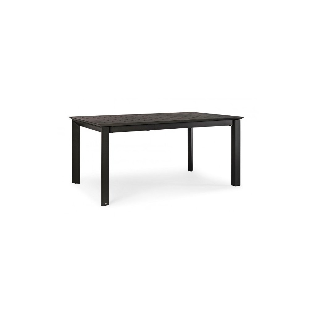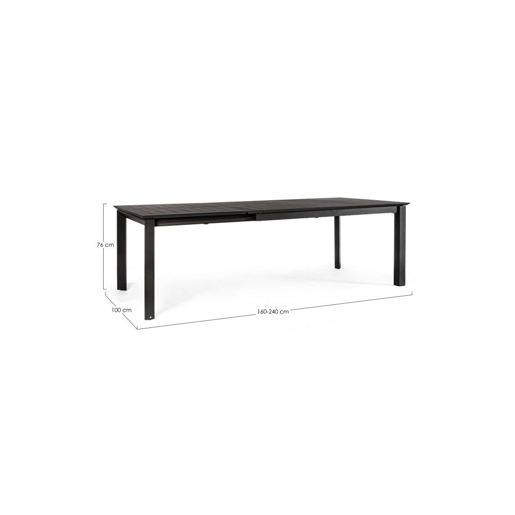 Rozkládací zahradní jídelní stůl KONNOR od italského výrobce stylového nábytku BIZZOTTO. Stůl je kompletně vyroben z antracitově stříkaného hliníku, což zajišťuje jeho maximální pevnost, stabilitu a pevnost vůči venkovním vlivům, ale také jeho poměrně nízkou váhu. Spojovací šrouby jsou galvanizovány, takže se nemusíme bát koroze. Stůl má 4 nohy, na nichž je rozkladatelná deska s délkou 160cm a možností jednoduchého teleskopického prodloužení až na délku 240cm, takže krásně usadíte minimálně 10 osob.