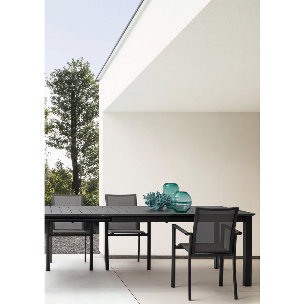 Rozkládací zahradní jídelní stůl KONNOR od italského výrobce stylového nábytku BIZZOTTO v antracitovém provedení stříkaného hliníku.