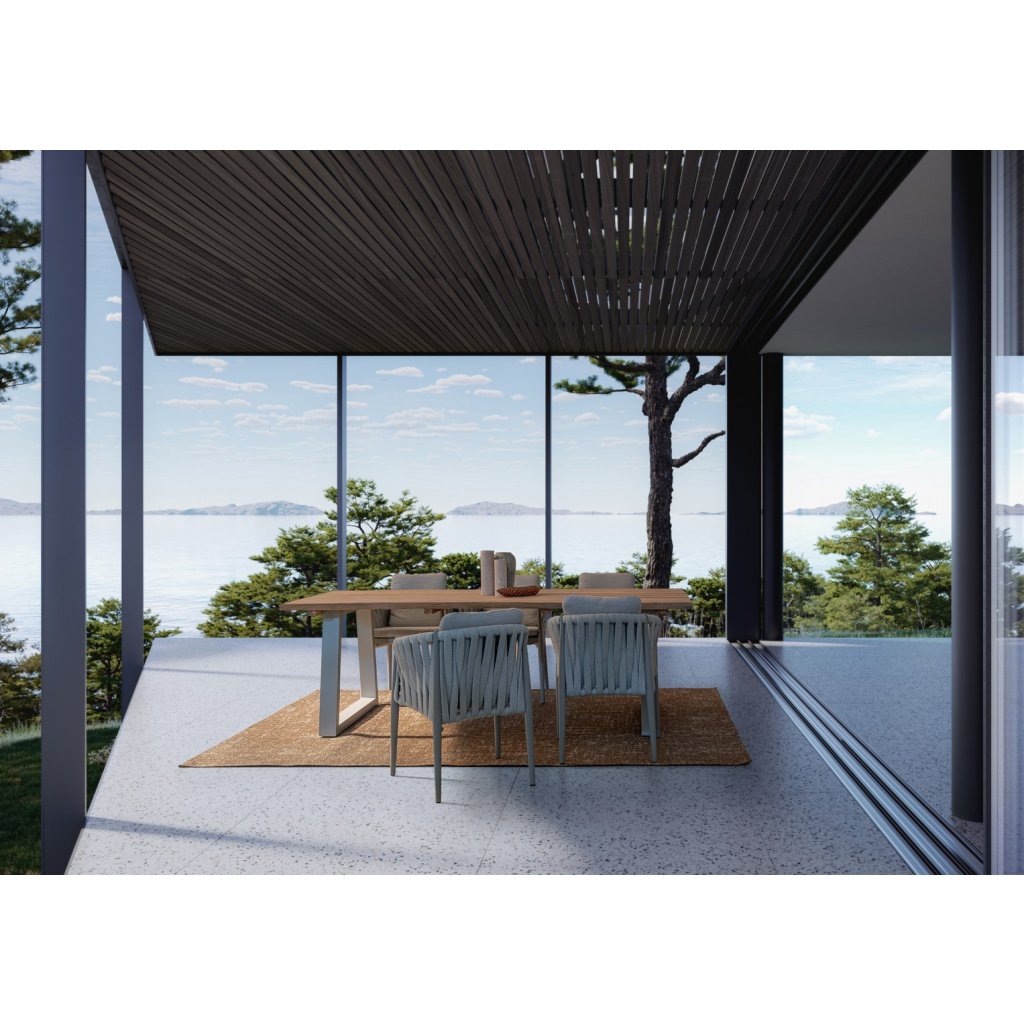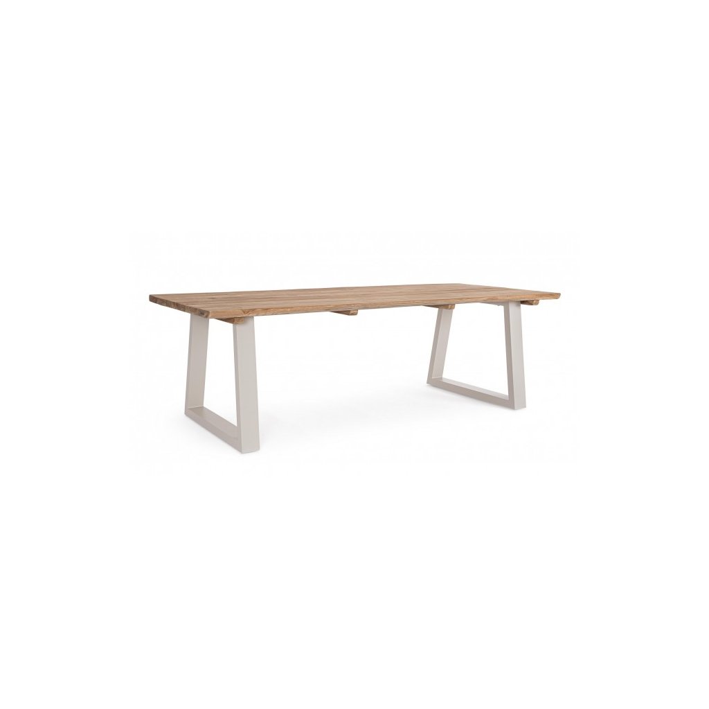 Nádherný zahradní stůl LEGEND od italského výrobce stylového nábytku BIZZOTTO v provedení teakové desky a základny z hliníku.