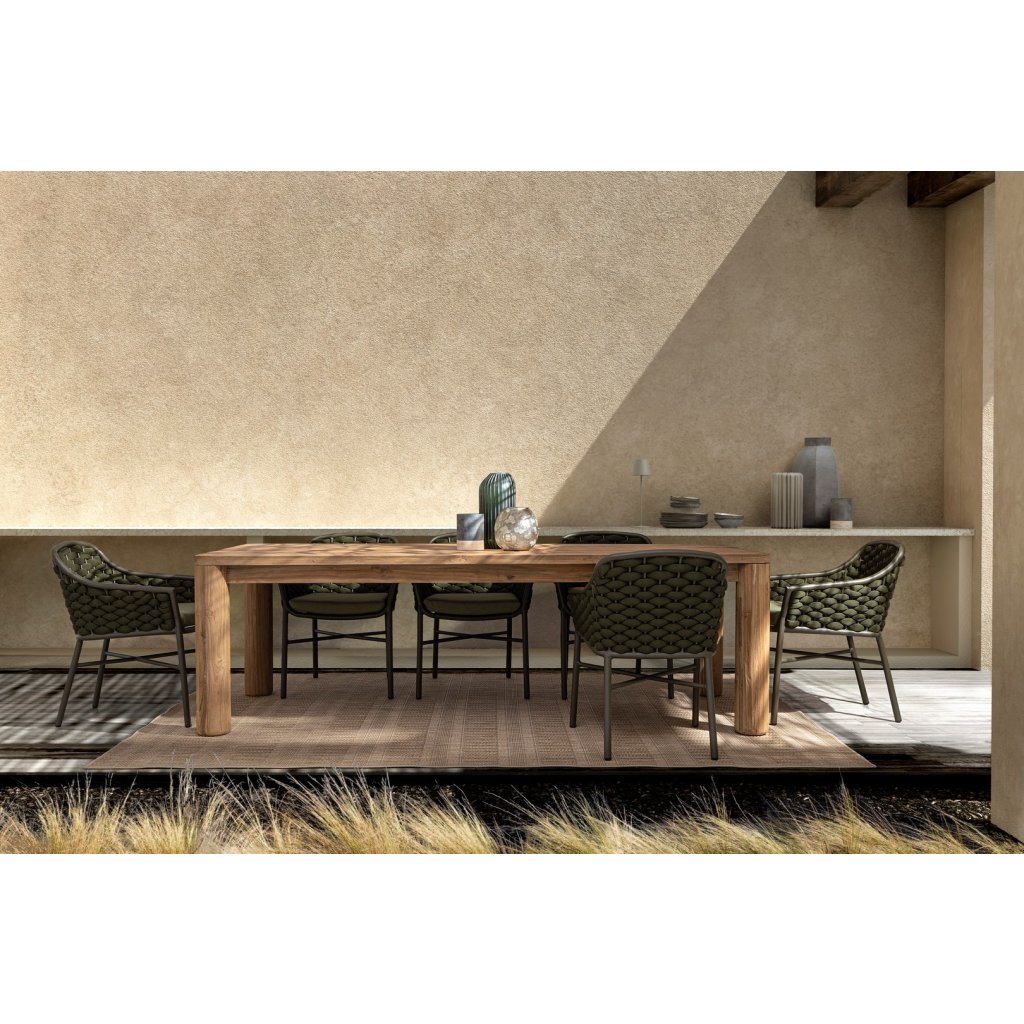 Stůl MAVERICK je velmi krásný a moderní zahradní jídelní stůl, který vám udělá obrovskou parádu na vaší terase nebo zahradě. Krásně sladíte s dalšími výrobky z teakového dřeva nebo ratanu ve světlé podobě. Díky tomu budete mít krásně světlou a útulně dřevěnou terasu.