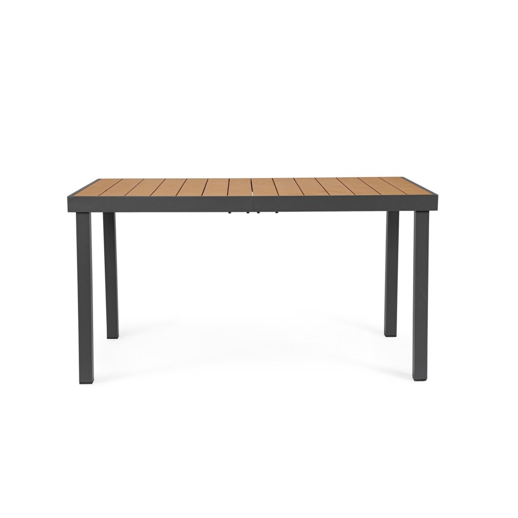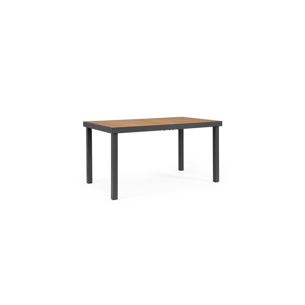 Nádherný zahradní stůl NIAGARA od italského výrobce stylového nábytku BIZZOTTO. Krásný a jednoduchý stůl je vyroben z kombinace práškového hliníku a recyklovaného plastu, který imituje dřevo. Stůl má celkem čtyři kovové nohy, které zajišťují stabilitu. Deska stolu má rozměry 140x80 centimetrů.