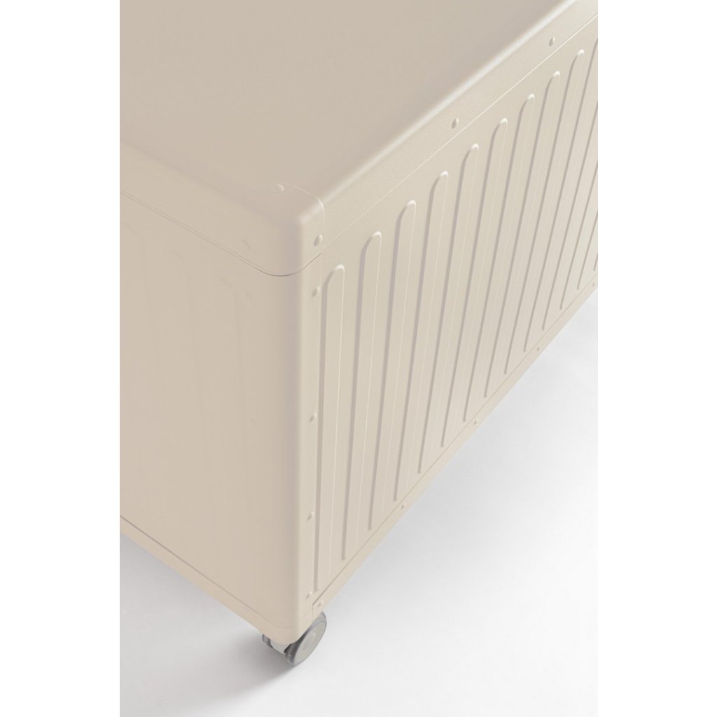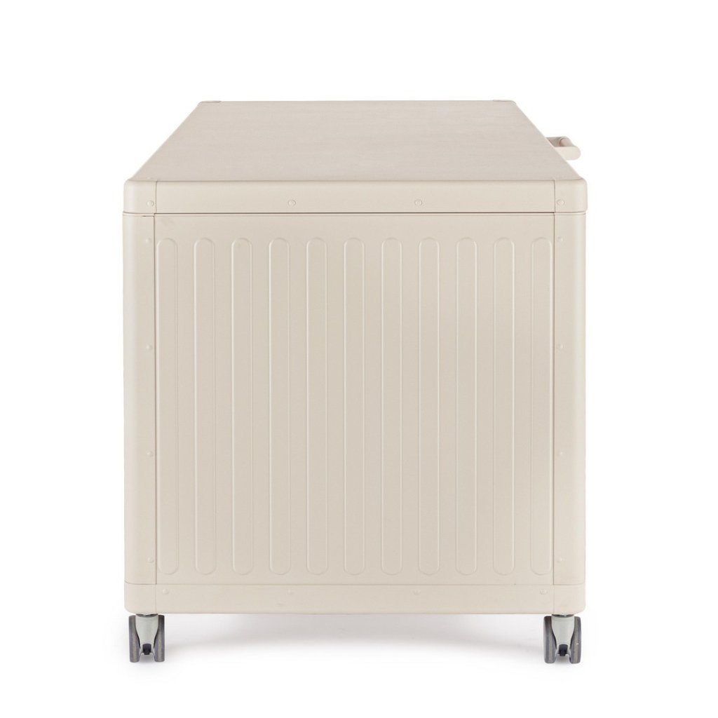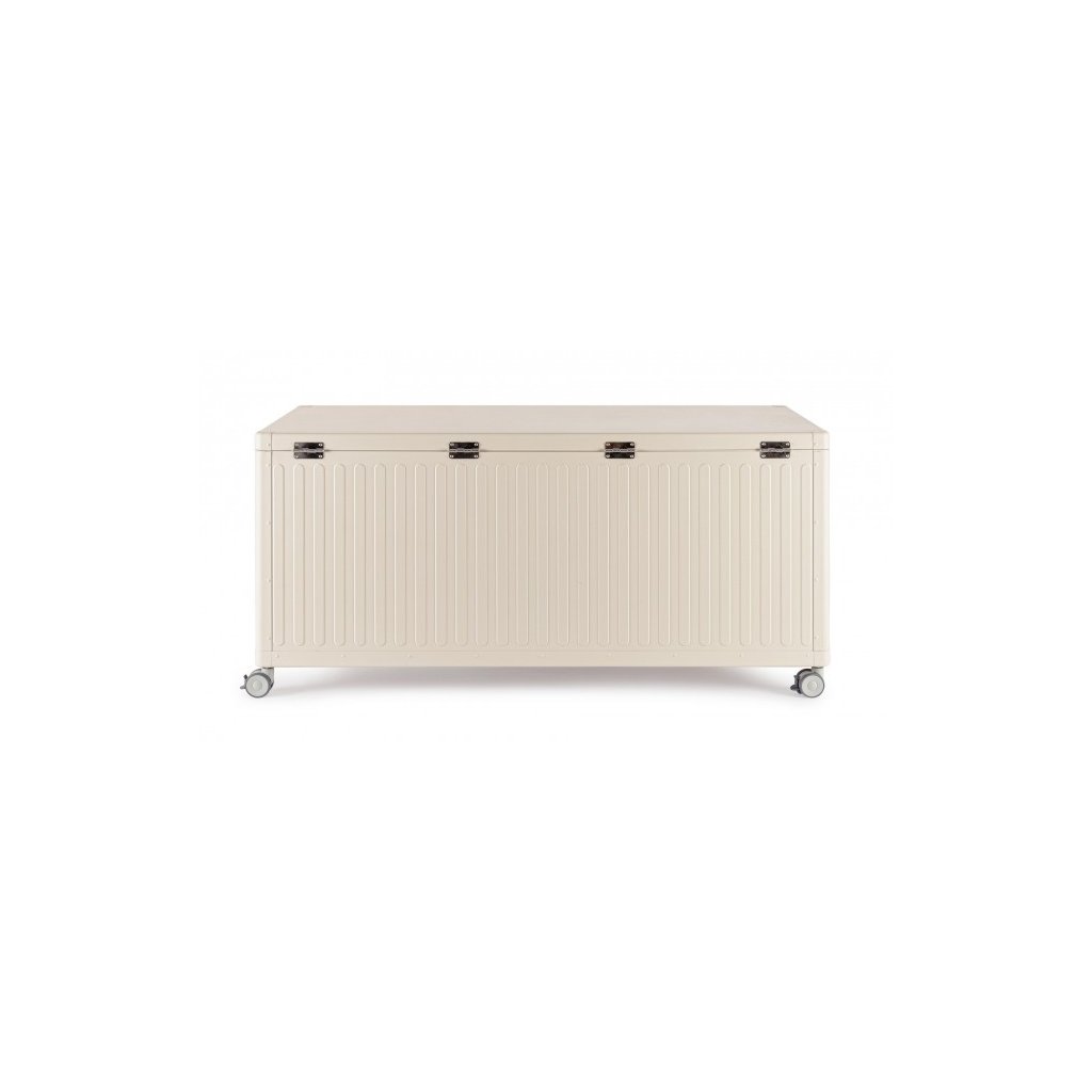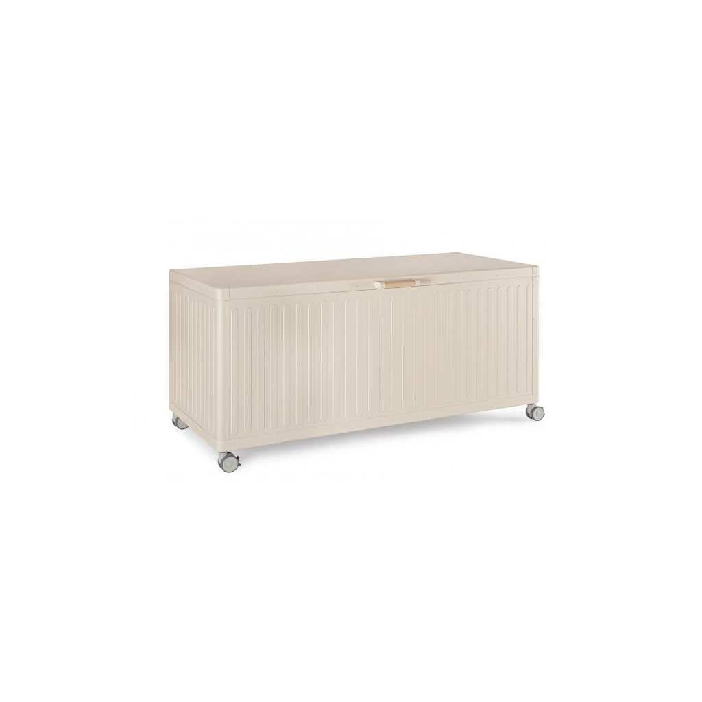 Zahradní úložný box OCEAN od italského výrobce stylového nábytku BIZZOTTO. Tento parádní kovový box v béžové barvě, má spoustu úložného prostoru pod víkem s rukojetí, jehož otevírání usnadňují dva plynové písty. Rukojeť je hliníková s aplikací PVC fólií s 3D efektem dřeva. Box můžete jednoduše přemisťovat díky praktickým uzamykatelným kolečkům. Perfektně sladíte s dalšími prvky z řady OCEAN, například ve stylové pergole. K dostání i v dalších barvách a velikostech.