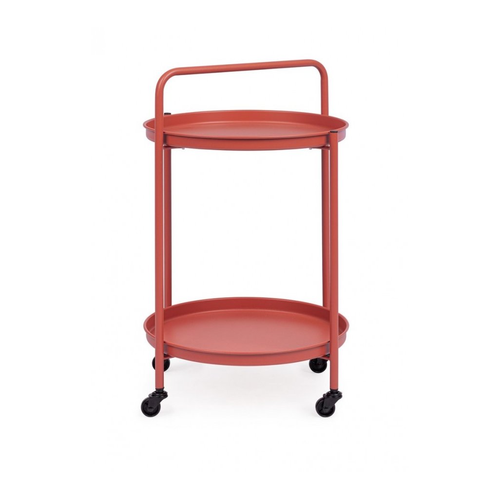 Zahradní vozík AUSTIN od italského výrobce stylového nábytku BIZZOTTO. Vozík AUSTIN je kompletně vyroben z oceli v terakotovém provedení. Povrch vozíku je upraven pro vnější použití s matným povrchem. Na nohou stolku jsou přidělaná 4 vyjímatelná kolečka. Vozík s průměrem 44,5 centimetrů má dvě odkládací plochy, které poskytují dostatek prostoru.
