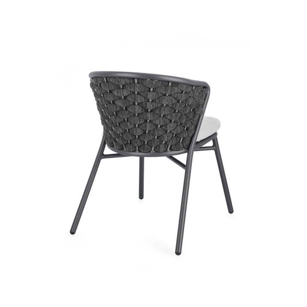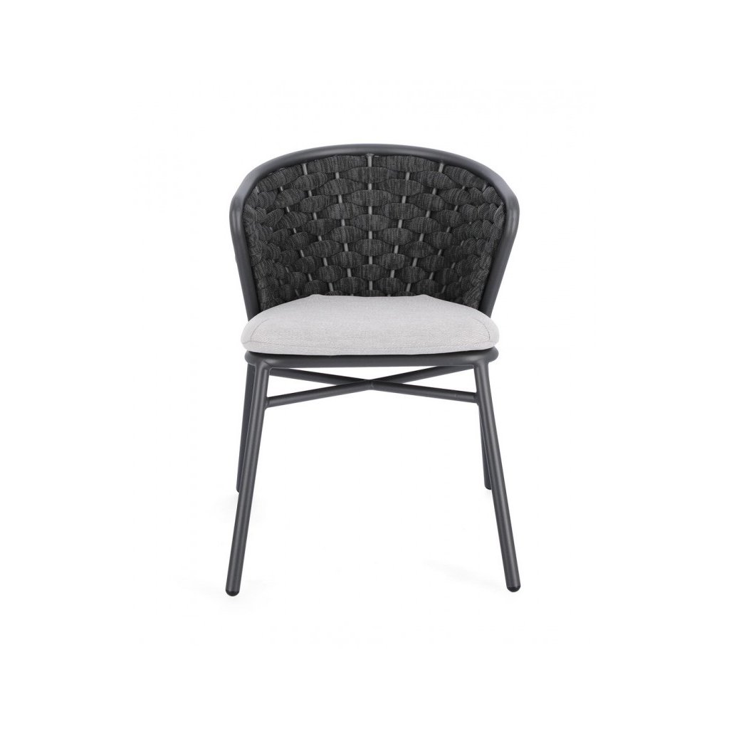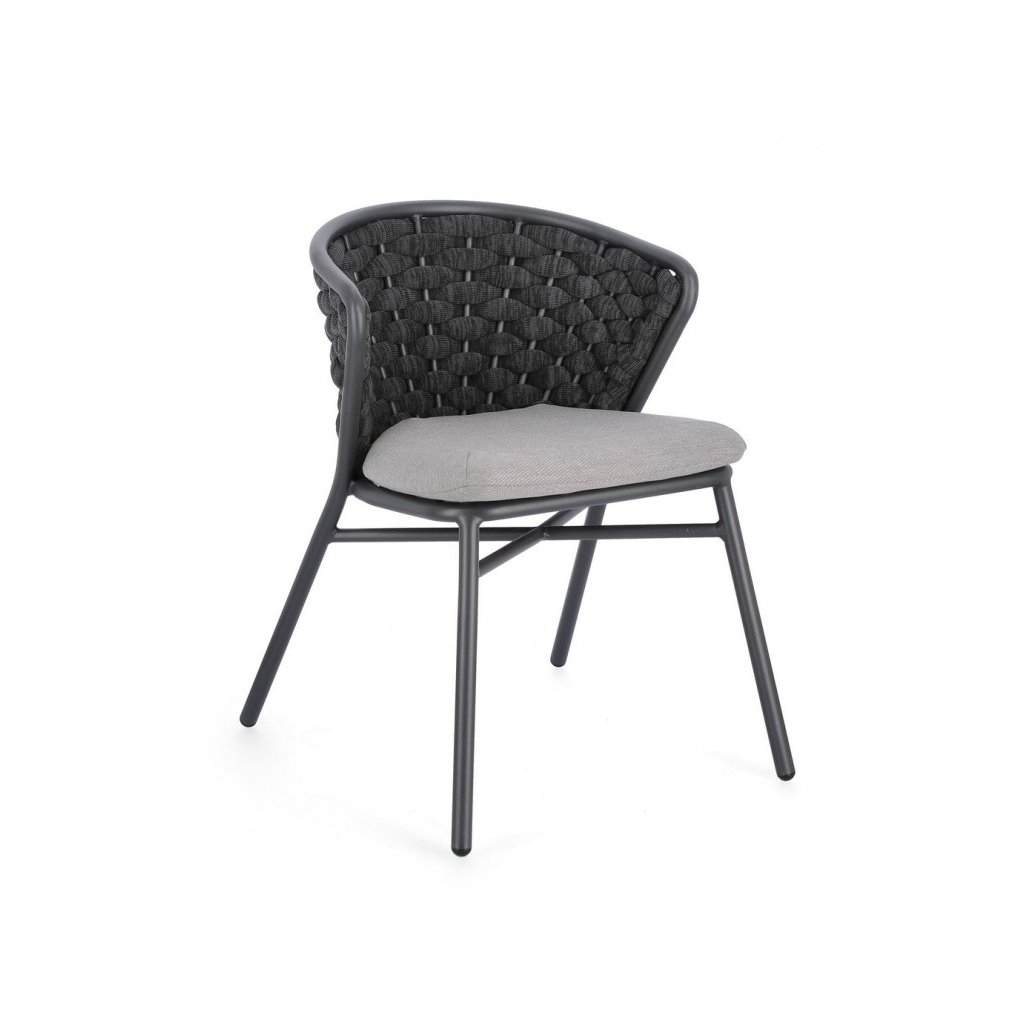 Designová zahradní židle HARLOW od italské firmy stylového nábytku BIZZOTTO v provedení z hliníkového rámu, lana a olefinové látky v antracitové barvě.