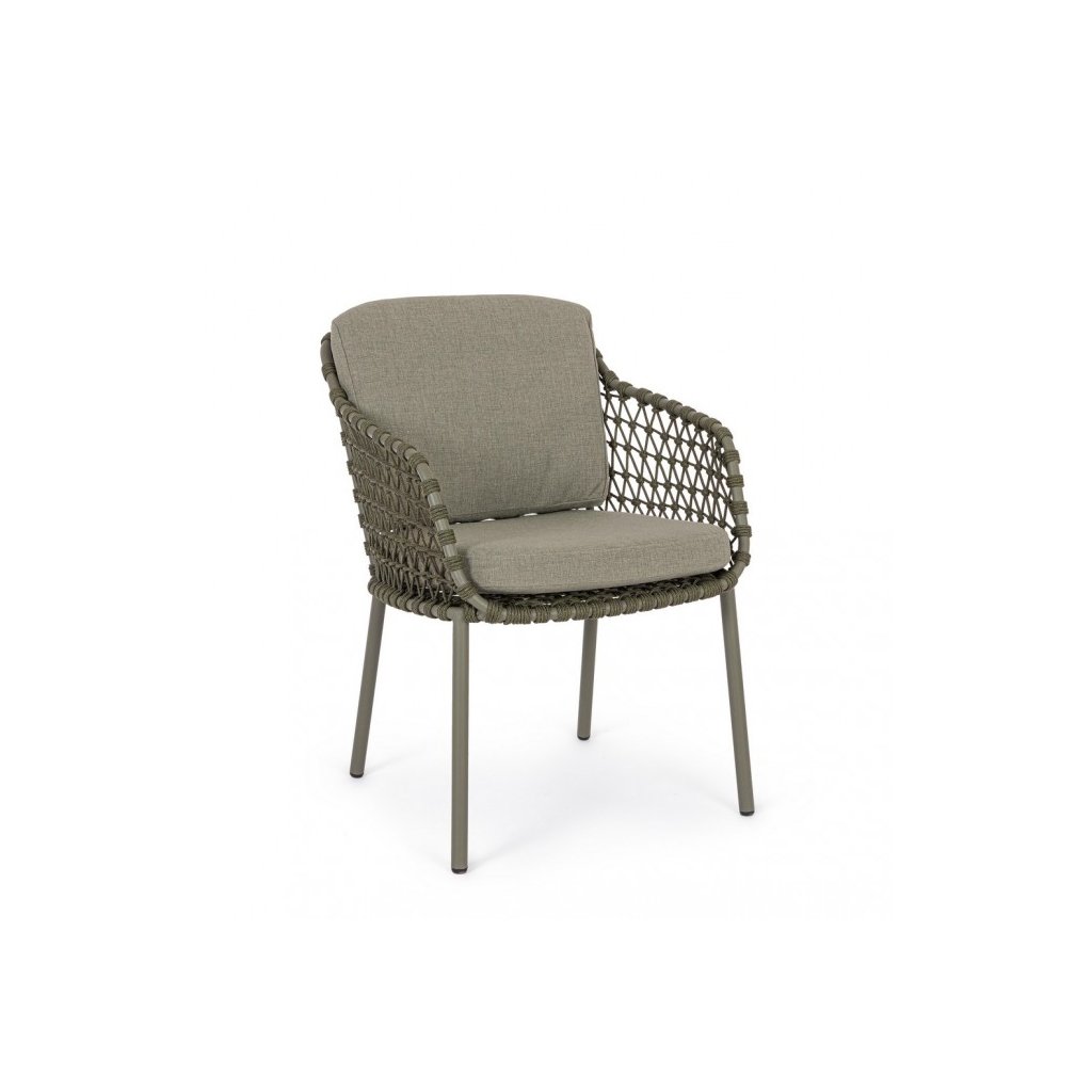 Designová  zahradní židle IVISSA od italského výrobce nádherného nábytku BIZZOTTO. Židle je dodávána s konstrukcí z nerezu a tkaní z polypropylenu. Židle se pyšní vyjímatelnými polštáři z voděodolné olefinové tkaniny z polypropylenu. Díky odolnému materiálu je možné využít jak uvnitř, tak i venku.