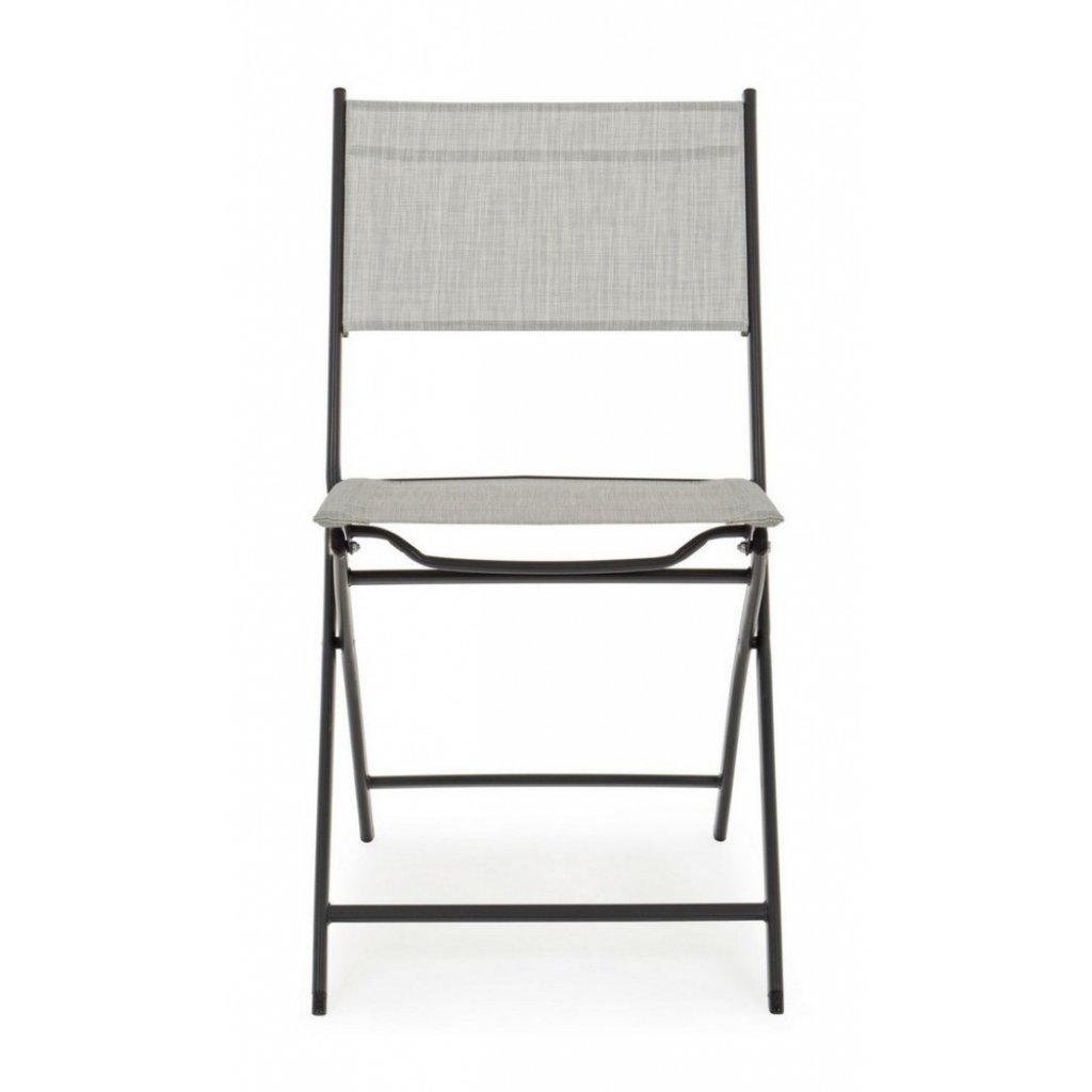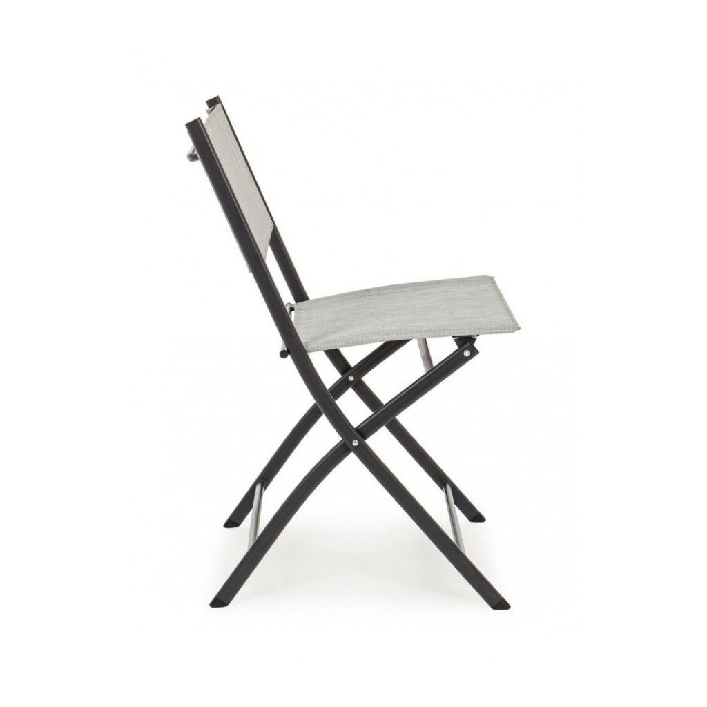 Jednoduchá skládací venkovní židle MARTINEZ od italského výrobce stylového nábytku BIZZOTTO v provedení černě lakovaného kovu a šedého potahu.