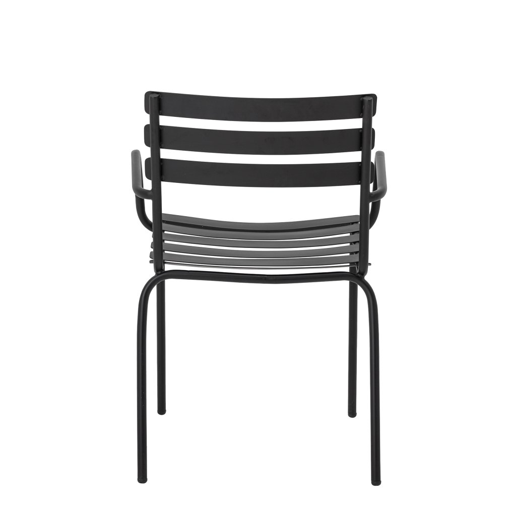 Designová venkovní kovová židle MONSI od dánského výrobce nádherného nábytku BLOOMINGVILLE. Židle je kompletně vyrobena ze železa v černém odstínu. Sestává se z konstrukce, kterou tvoří tenké kovové nohy, které postupně přecházejí v jednoduché područky. Sedák a opěrka je pak tvořena z tenkých kovových plátů.