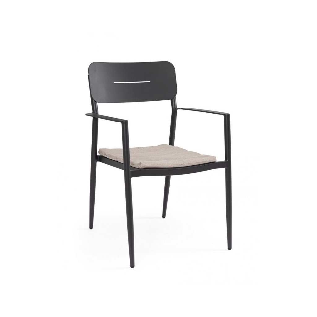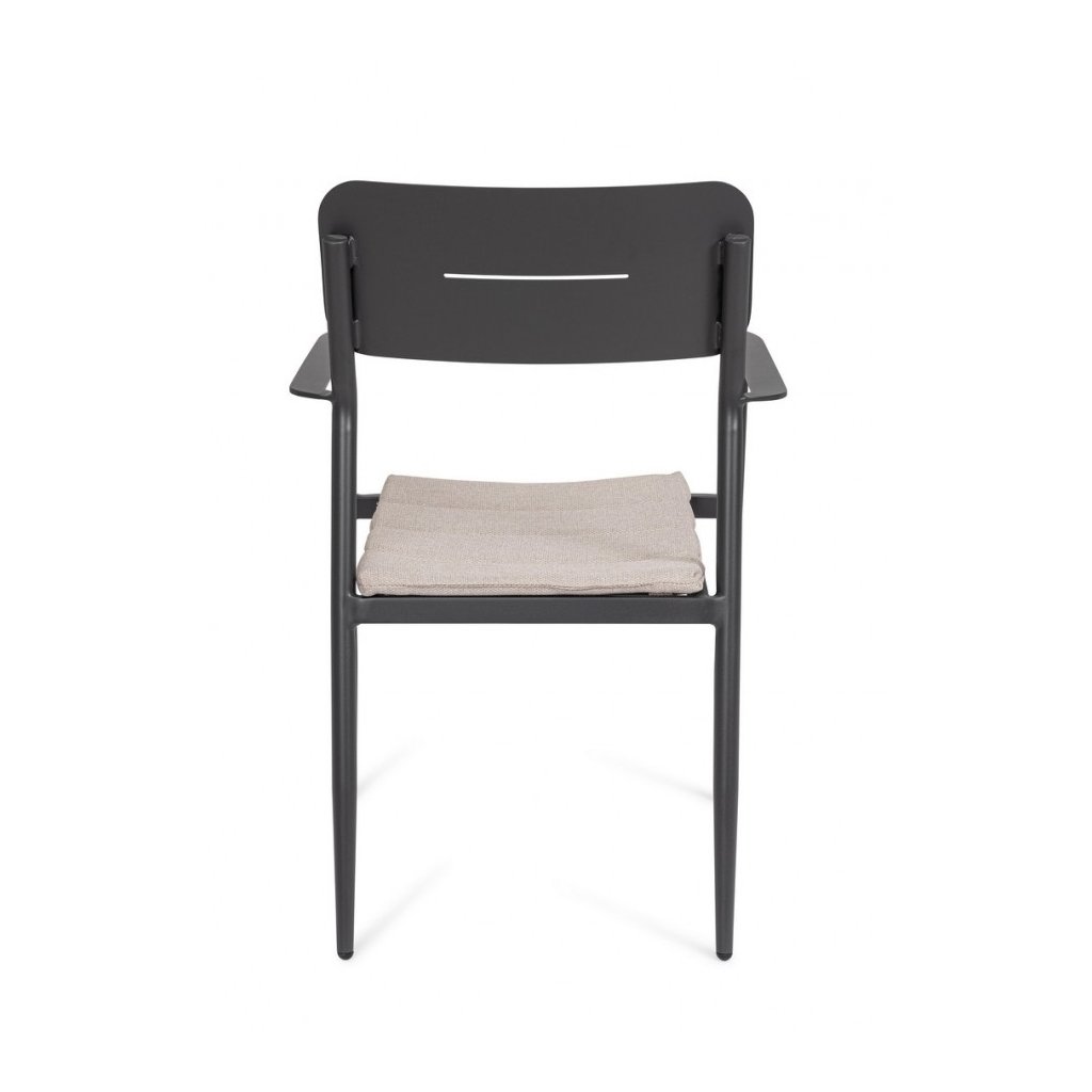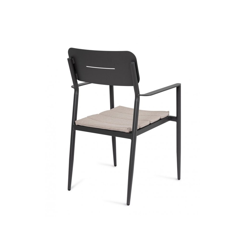Designová zahradní židle NEBULA od italského výrobce stylového nábytku BIZZOTTO v kombinaci konstrukce v antracitové barvě a béžového sedáku.