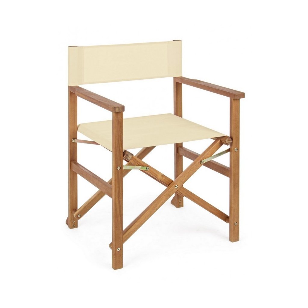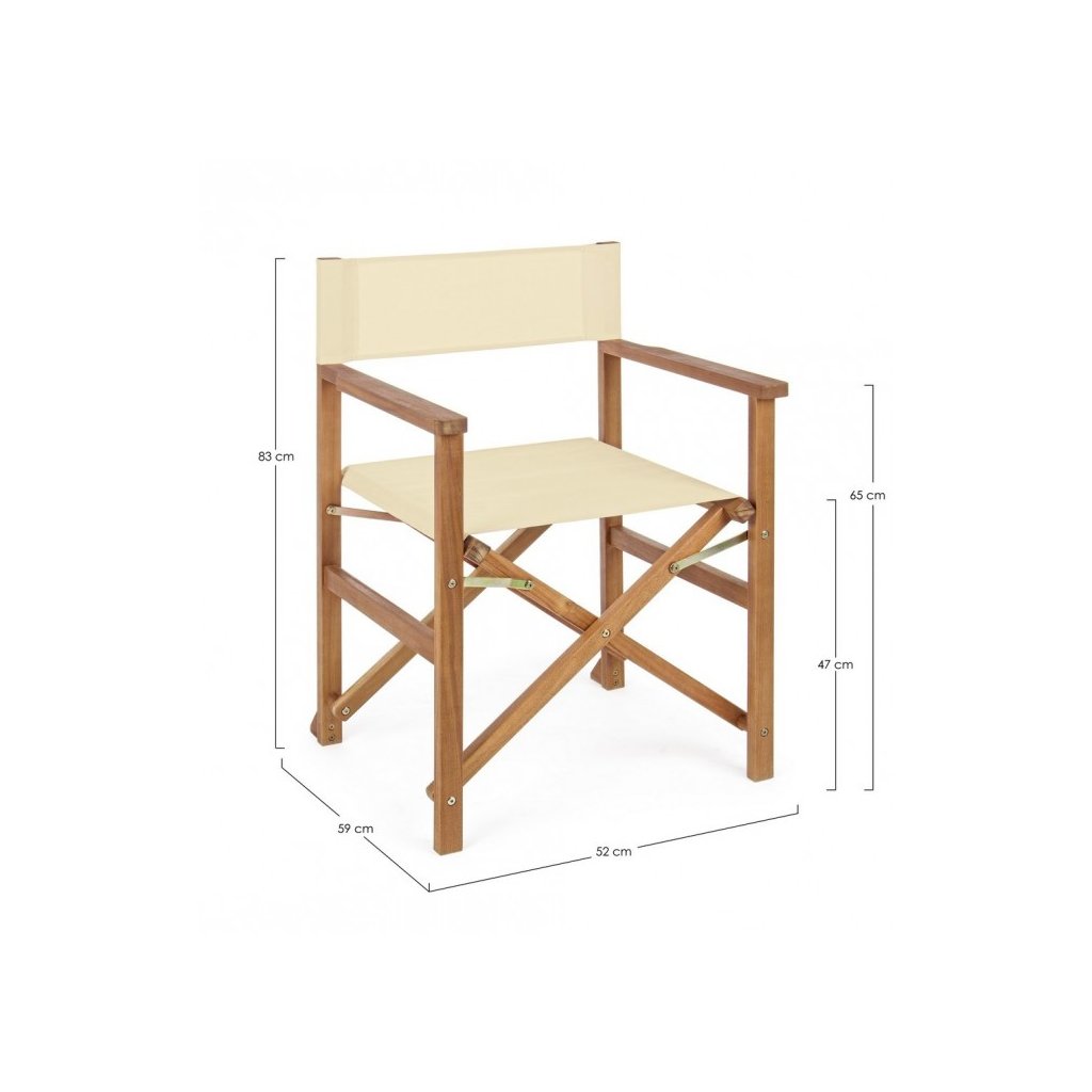 Designová dřevěná venkovní židle NOEMI od italského výrobce stylového nábytku BIZZOTTO. Židle je kompletně vyrobena z masivního dřeva akácie s olejovou úpravou pro zajištění maximální trvanlivosti dřeva ve venkovních podmínkách. Židli tvoří rám, který začíná na 4 nohou, které přechází v područky a pokračuje do vrchní části židle, opěrky. Sedák a opěrka jsou tvořeny z polyesteru ve světlé krémové barvě. Spoje jsou sestaveny krom jiného galvanizovanými šrouby, takže nemusíte mít starost o jejich korozi.