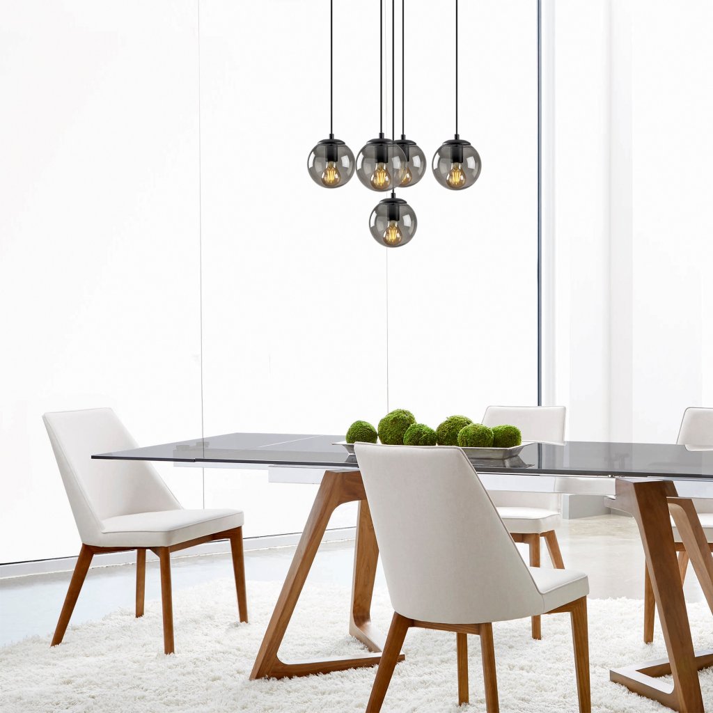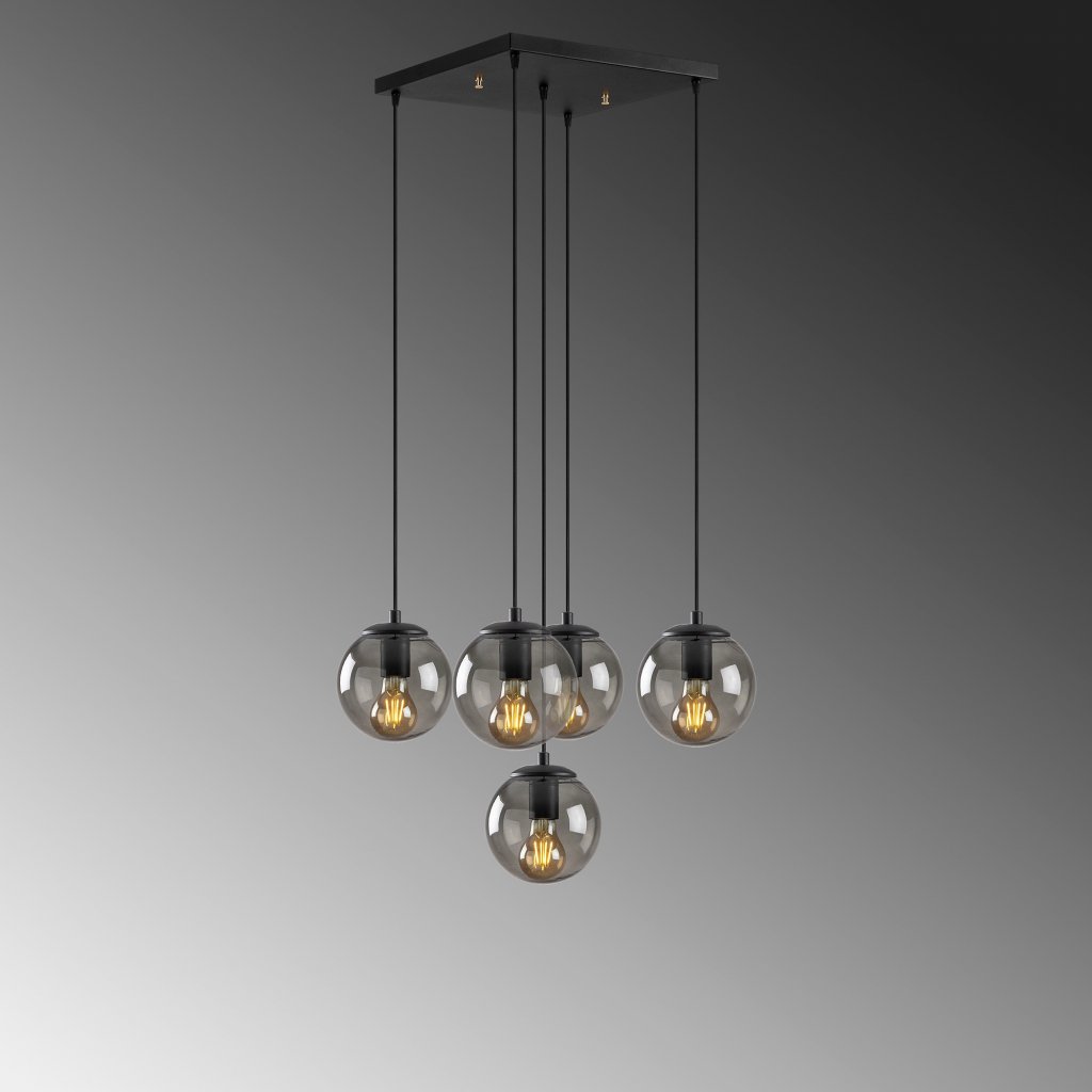 Designové závěsné osvětlení EFE od výrobce krásných osvětlení OPVIQ. Nádherné a v současnosti oblíbené svítidlo, moderní lustr s 5 skleněnými svítidly, který se hodí do všech moderních i dalších prostorů. Díky příjemnému a barevnému provedení upoutá pozornost každé návštěvy. Základna a kabely k stínidlům jsou v černém provedení, skleněná stínidla mají šedočerné zatmavení. Výška je nastavitelná. Určitě udělá radost všem milovníkům pěkných světel.