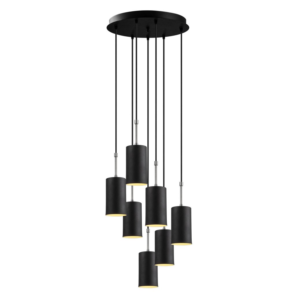 Designové závěsné osvětlení KEM od výrobce osvětlení OPVIQ v černém provedení. Krásné, stylové a designové světlo, které potěší nejen milovníky netradičních a unikátních světel. Obsahuje 7 kovových stínidel v černé barevné úpravě. Základna a kabely k stínidlům jsou taktéž v černém provedení, pouze konce úchytek stínidel jsou chromované, čímž ještě umocňují celkový elegantní vzhled. Výška jednotlivých stínidel je nastavitelná, takže můžete vytvořit buď postupně snižující se roj světel nebo vše v jedné úrovni.