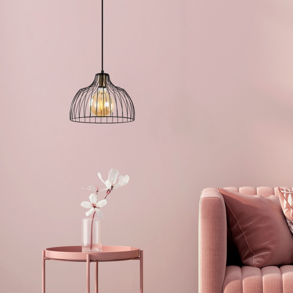 Designové závěsné osvětlení KOZAN od výrobce stylového osvětlení OPVIQ. KOZAN tvoří vrchní černý kryt přecházející do černého elektrického přívodního kabelu. Ten lze podle volby zkrátit na požadovanou délku. Na konci kabelu je objímka pro umístění žárovky a nádherné stínidlo ve tvaru misky, které tvoří tenké kovové tyče v černé barvě, navzájem pospojované spolu.