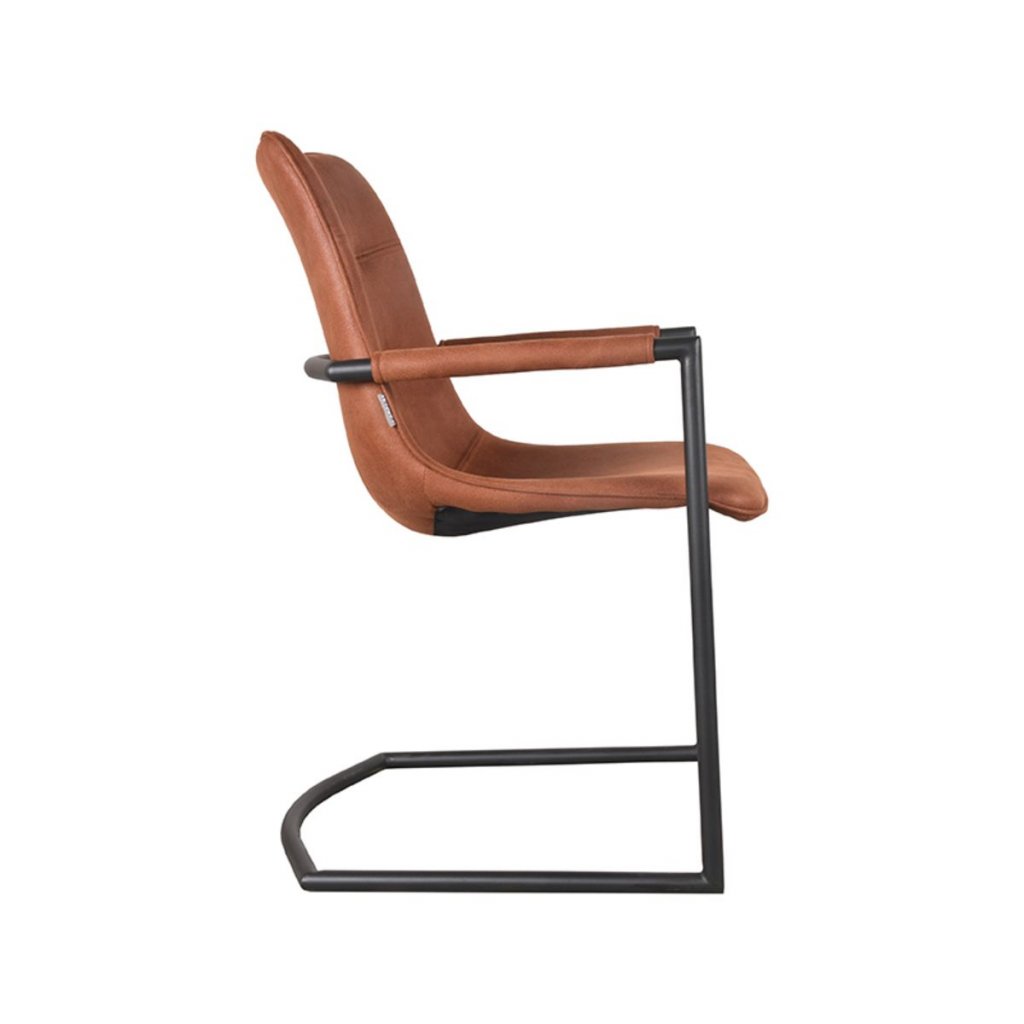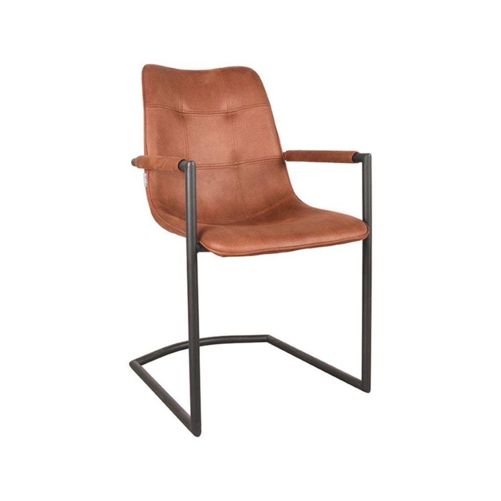 Jídelní židle BOYD od holandského výrobce industriálního nábytku LABEL51. BOYD je robustní, pohodlná a jedinečná. Prošívaný a kvalitní sedák s opěradlem je společně s područkami tvořen z mikrovlákna v koňakové barvě. Zajímavě tvarovaná, pevná, kovová konstrukce zajišťuje maximální nosnost a stabilitu židle.