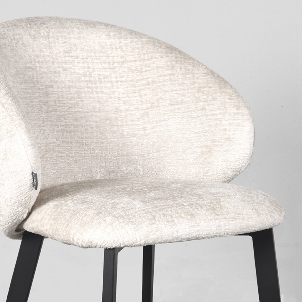 Stylová židle LOGAN od holandského výrobce industriálního nábytku LABEL51. Designová jídelní židle LOGAN je super elegantní, trendy a robustní jídelní židle. Je vyrobená z krémového sametu, má luxusní sedák a zakulacený opěrák, který přechází v decentní područky. Tato kombinace dělá ze židle LOGAN luxusní kus nábytku s maximálním komfortem.