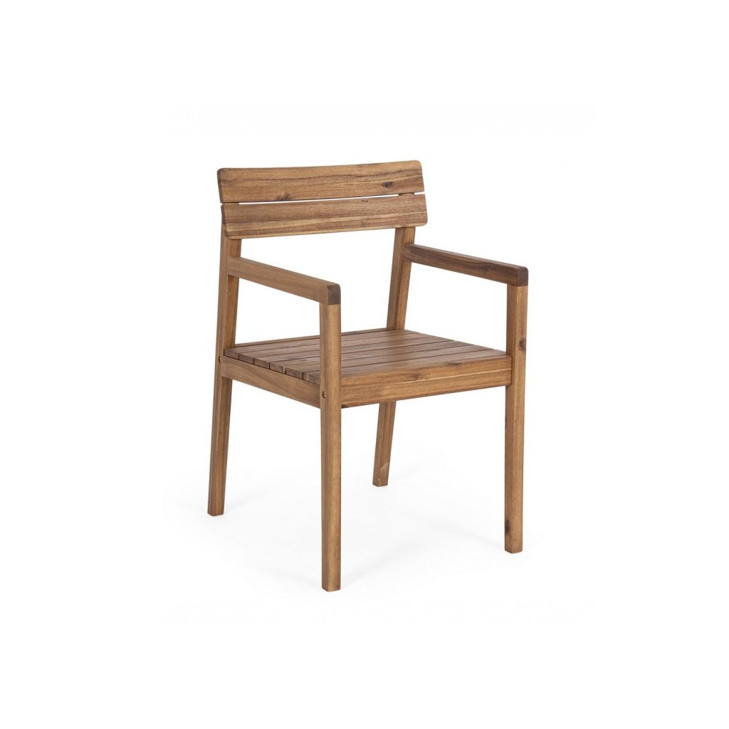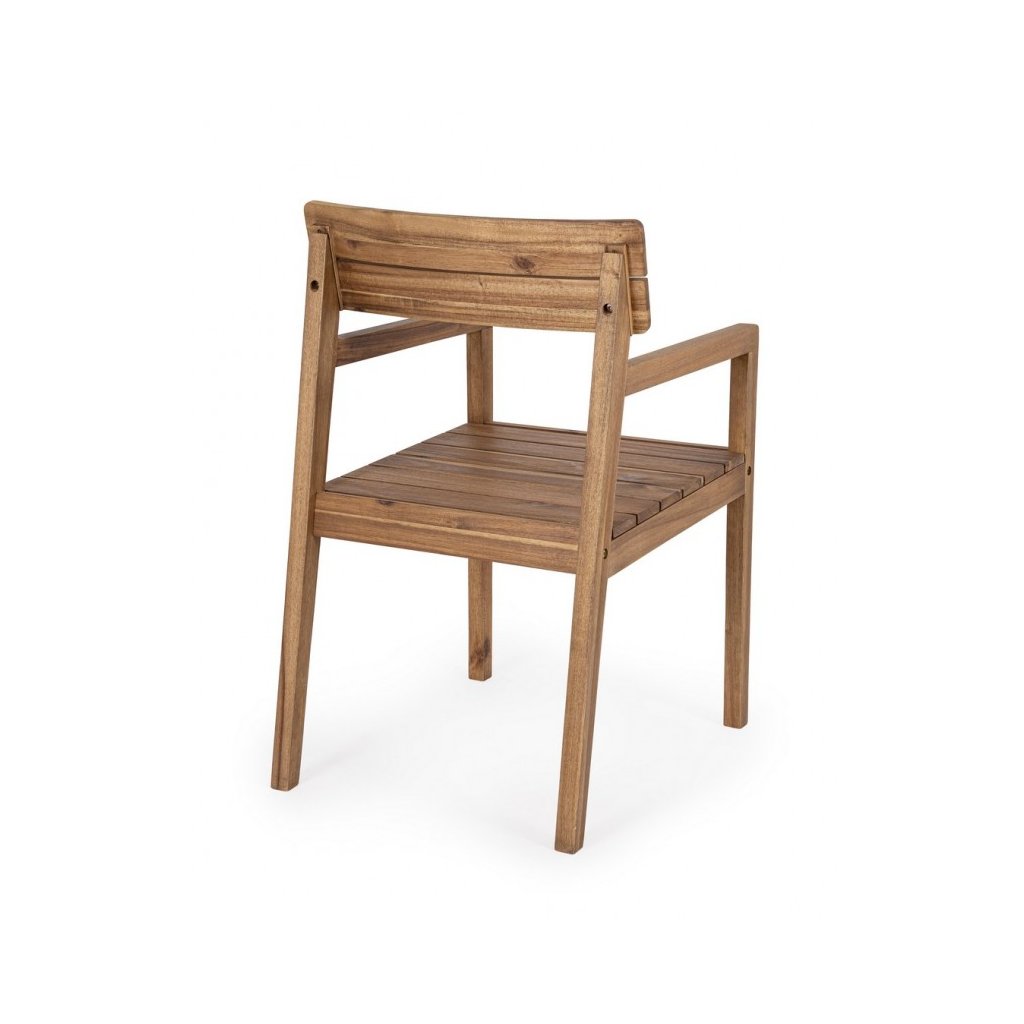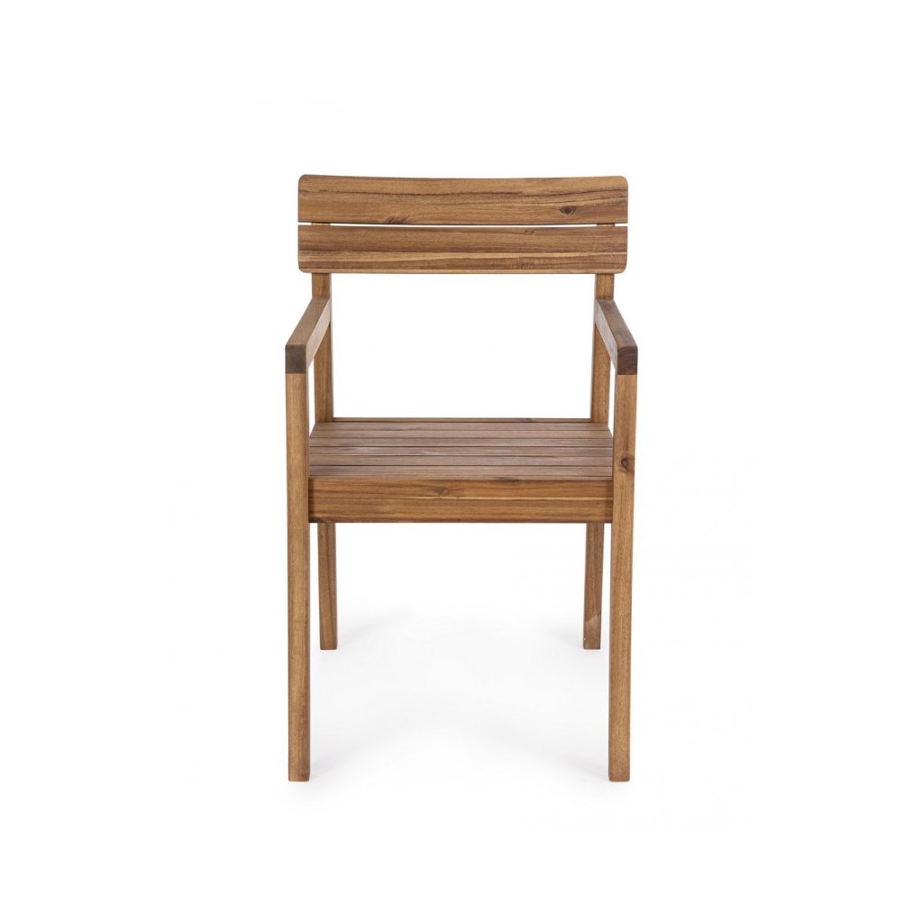 Designová dřevěná venkovní židle RODANO od italského výrobce stylového nábytku BIZZOTTO. Židle je kompletně vyrobena z masivního dřeva akácie s olejovou úpravou pro zajištění maximální trvanlivosti dřeva ve venkovních podmínkách. Židli tvoří rám, který začíná na 4 nohou, které přechází v područky a pokračuje do vrchní části židle, opěrky. Sedák a opěrka jsou tvořeny z tenčích dřívek akácie a vytváří krásné žebrování. Spoje jsou sestaveny krom jiného galvanizovanými šrouby, takže nemusíte mít starost o jejich korozi.